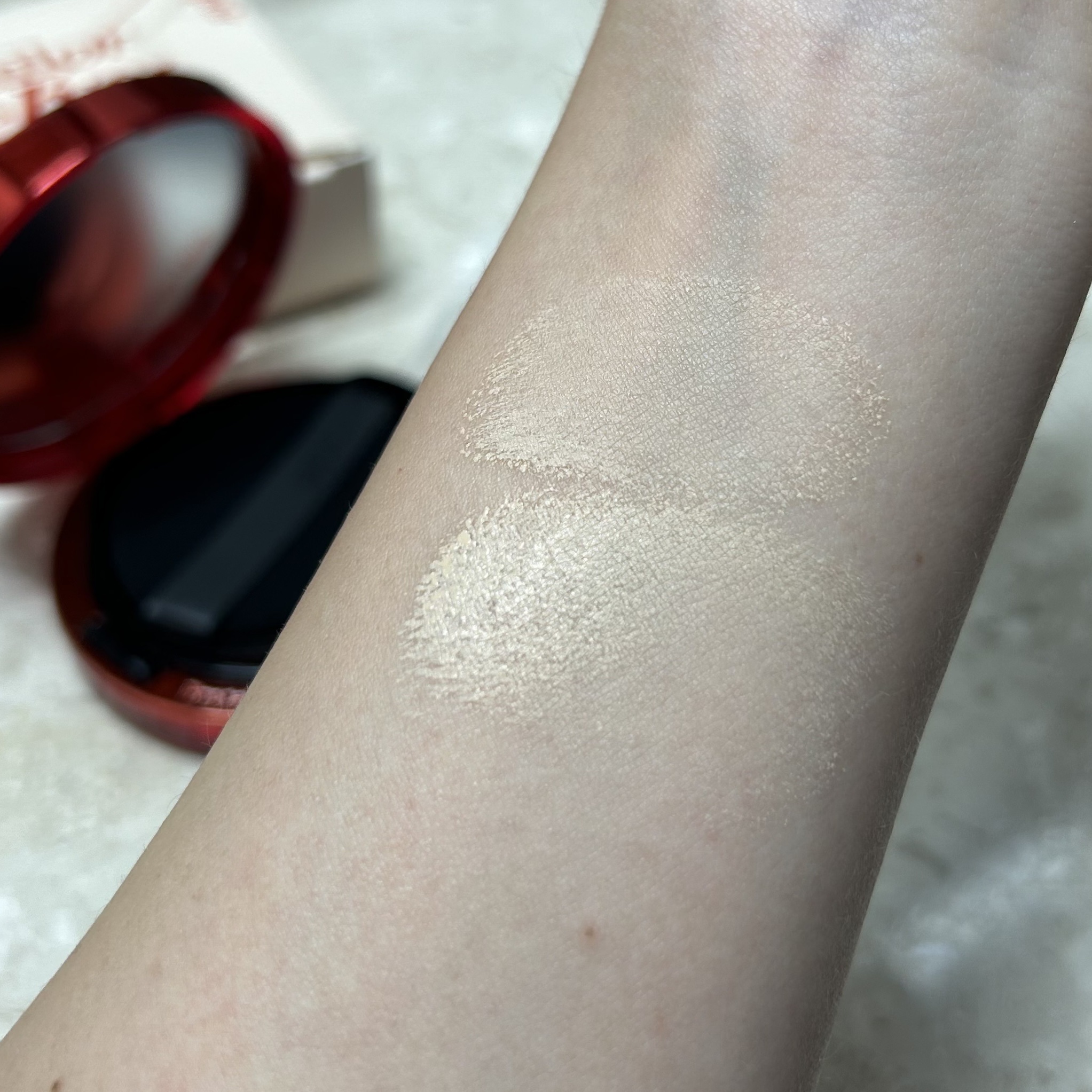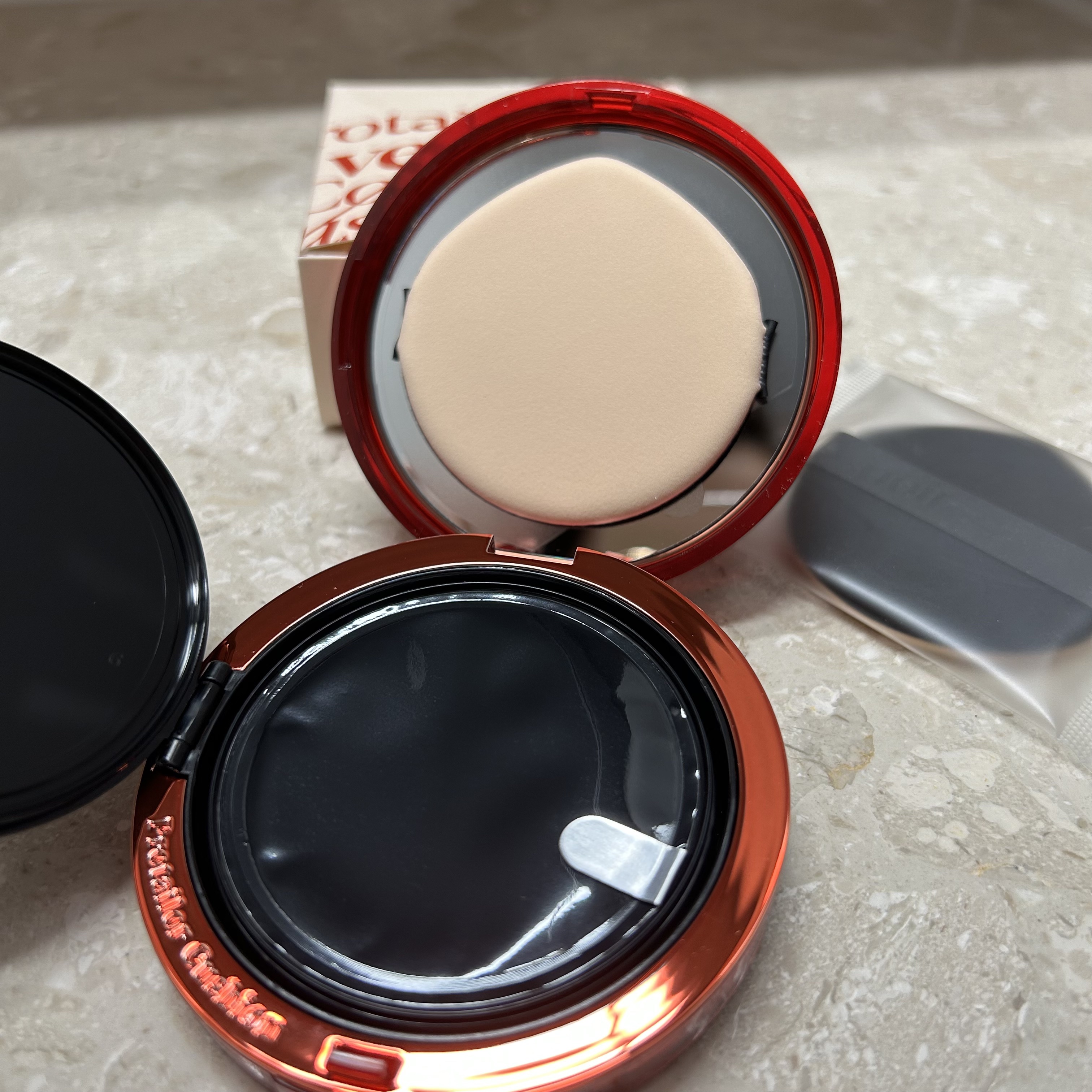 今年の夏は本当に暑くて、顔汗もやばかった…。 でも、このクッションファンデは本当に化粧崩れしにくくて優秀🐬⛱️ そして、このファンデのもうひとつの推しポイントはなんといってもカバー力🎖️ お肌のくすみや、私のコンプレックスの頬の毛穴もバッチリカバーしてくれます🐰✨ カバー力抜群なので、一気に肌に乗せるより少量ずつ薄く塗り広げていくのがいい感じです。 色むらや、カバーしたい部分は少しずつ重ねて自然な仕上がりにするのが◎ そして、仕上がりはセミマットななめらか肌に〜🧡 マット系のファンデで気になるのはお肌の乾燥ですが、私は特に気になりませんでした。 そして嬉しいSPF34 PA++🌞 外出先で日焼け止めを塗り直すのは難しいけど、このファンデならササっと化粧直し&手軽に紫外線対策ができちゃいます🧚♀️💫 そして、クリアレッドのケースはキラキラしてて本当に可愛い❤️ ちなみに付属のパフはもちもちで使い心地が良くて、本当にお気に入り‼︎