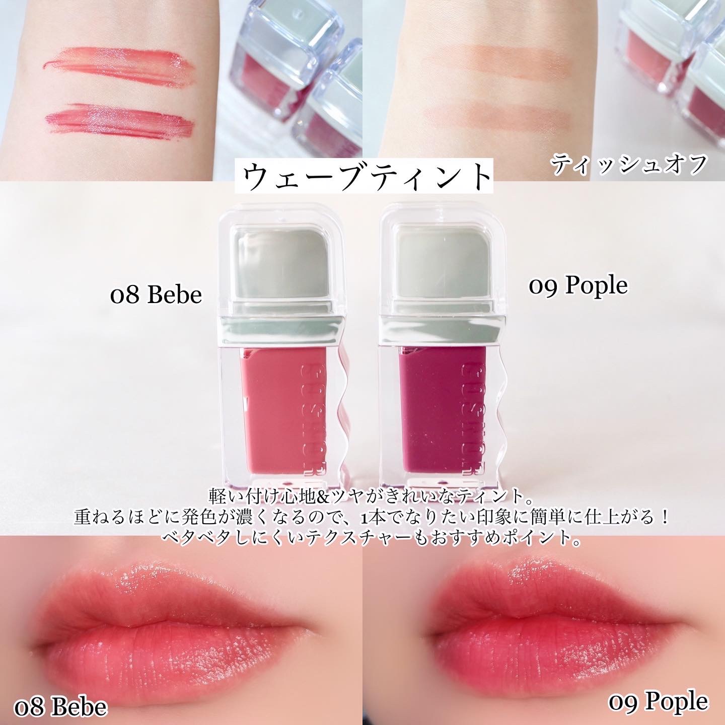 とにかく質感がしーっとりととろけるバームテクスチャーで、保湿力はかなり高い! 少しペタペタもしますが密着力もあるので色持ち良し♪ マスクレスの時にぜひ使いたいぷるぷるでツヤがきれいな仕上がりです。 カラー展開も豊富で、イエベさん向けブルベさん向け揃ってます☆ 私のお気に入りは01と05♡ そして08 Coraliaも可愛くって好き! 6月からドラッグストアにも展開予定だそうですよ♡