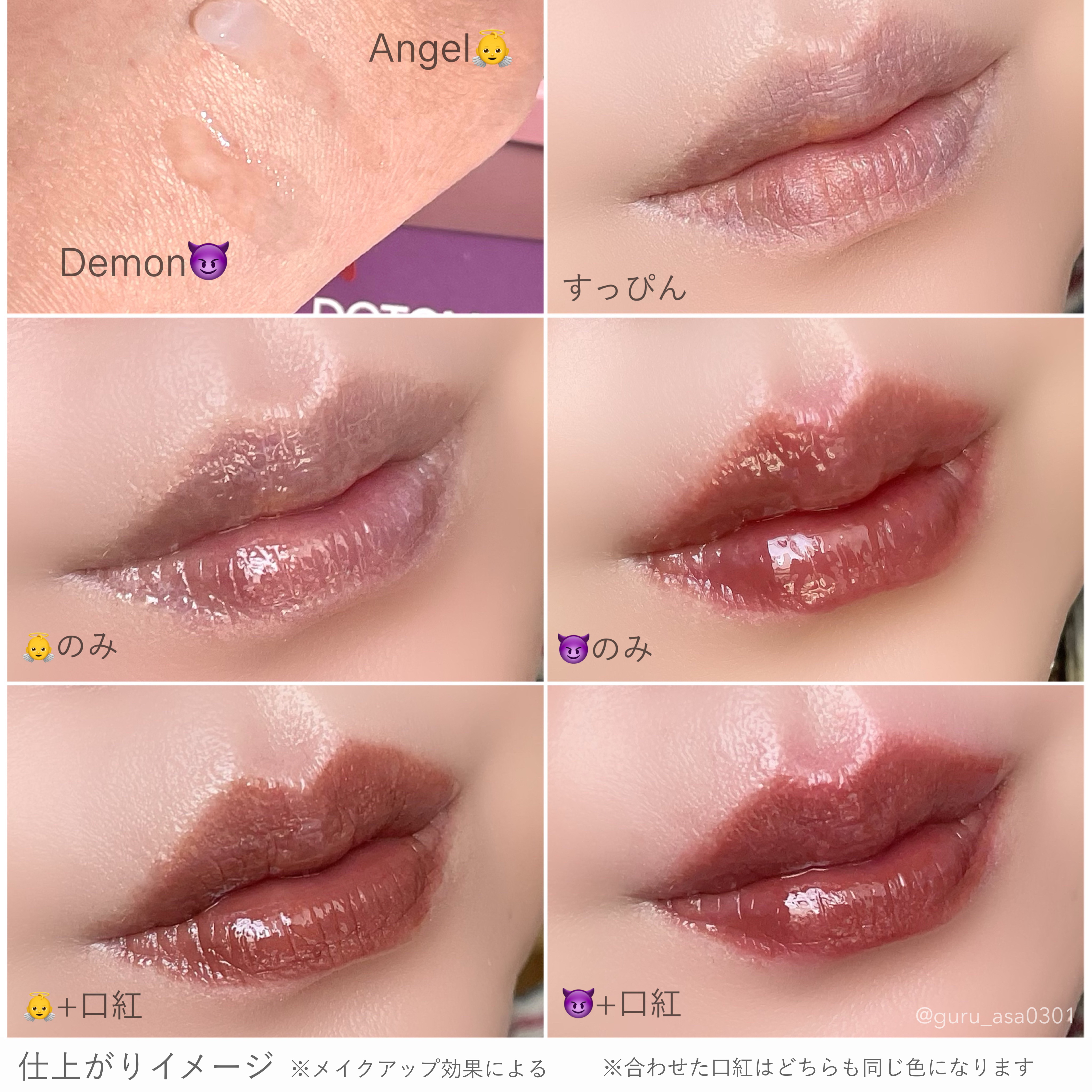 刺激的でホットなDEMON😈 塗って少し経つとピリピリ⚡️痛い!辛い! しばらく持続するので、どんどんふっくら、血色感も出てきます。透明なので、どんなリップとも合わせやすい○ 塗りやすいテクスチャーで、ベタつかないさらっとした軽いつけ心地。チューブタイプで量の調整もしやすいです。