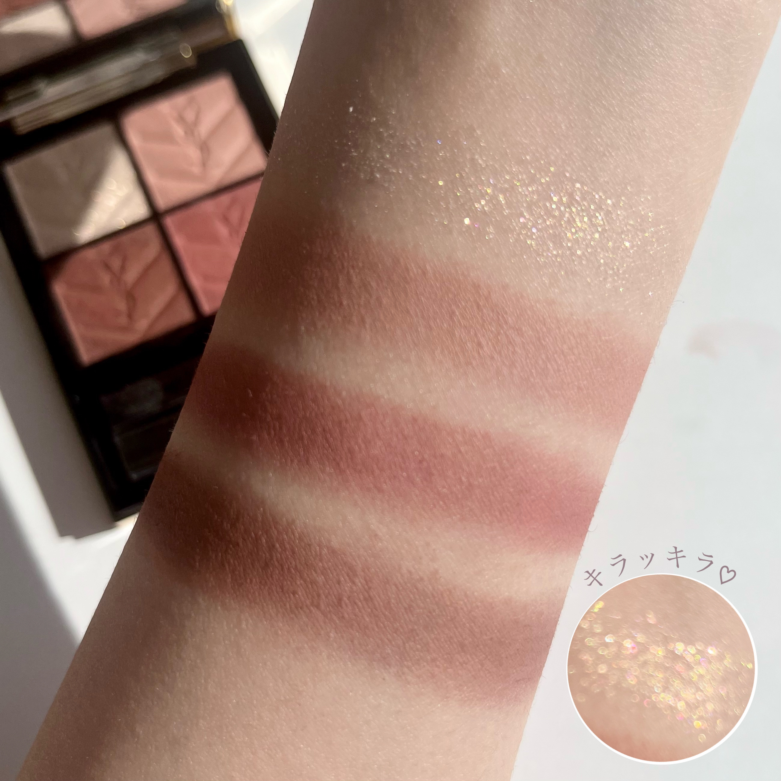 KANEBOの春の新色アイシャドウが可愛すぎた🤤💓 一目惚れして購入したのでご紹介。 光に当てるとびっくりするくらいキラッキラで華やかなの🫶 ツヤ質感と華やかなラメしか入っていない贅沢なパレット。 華やかさとナチュラルさの両立ができます☺️💖 ベージュの中にほんのり潜んだピンクもまた可愛い🍑🤍