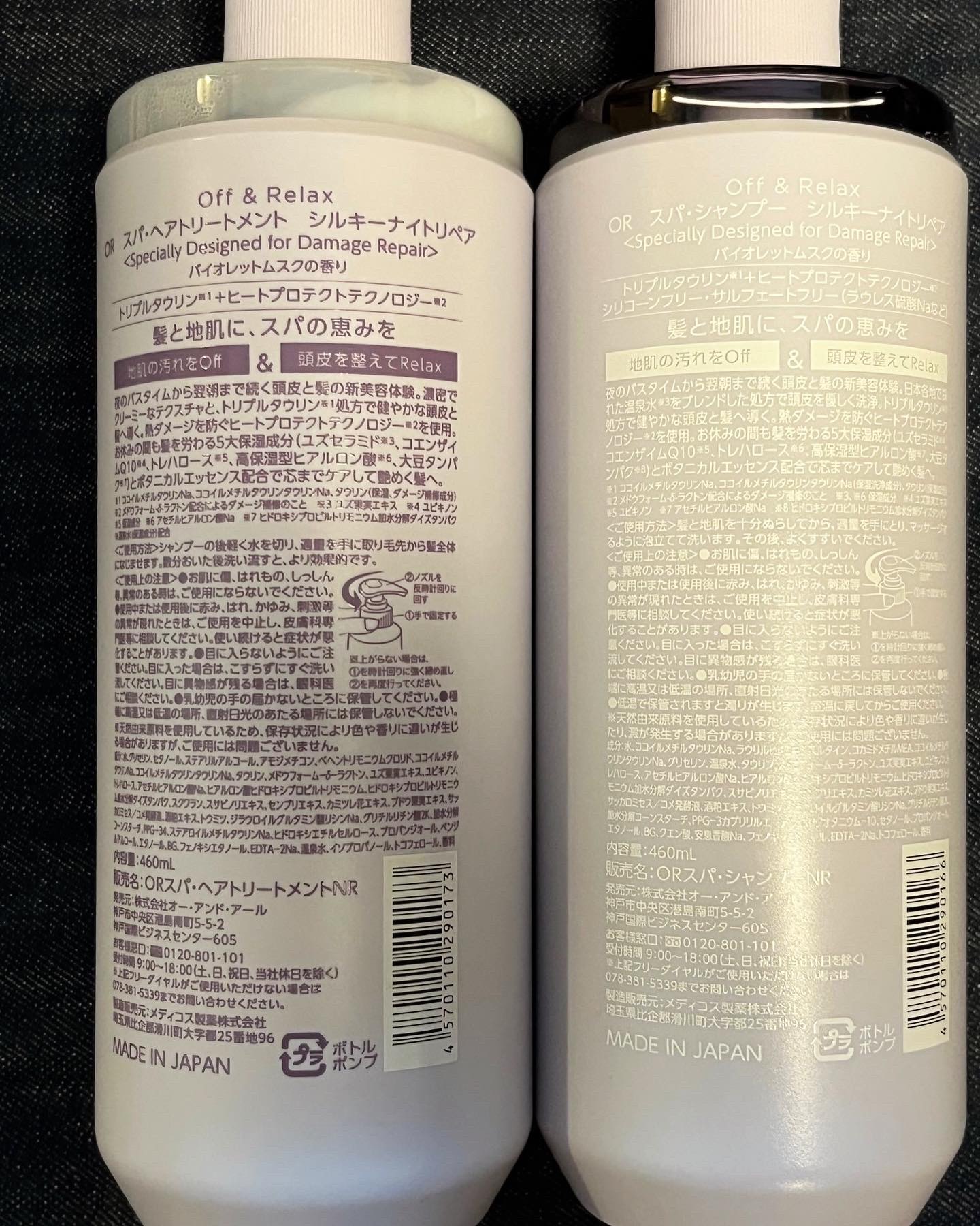 商品詳細情報Off&Relax OR スパ・シャンプー/ヘアトリートメント シルキーナイトリペア