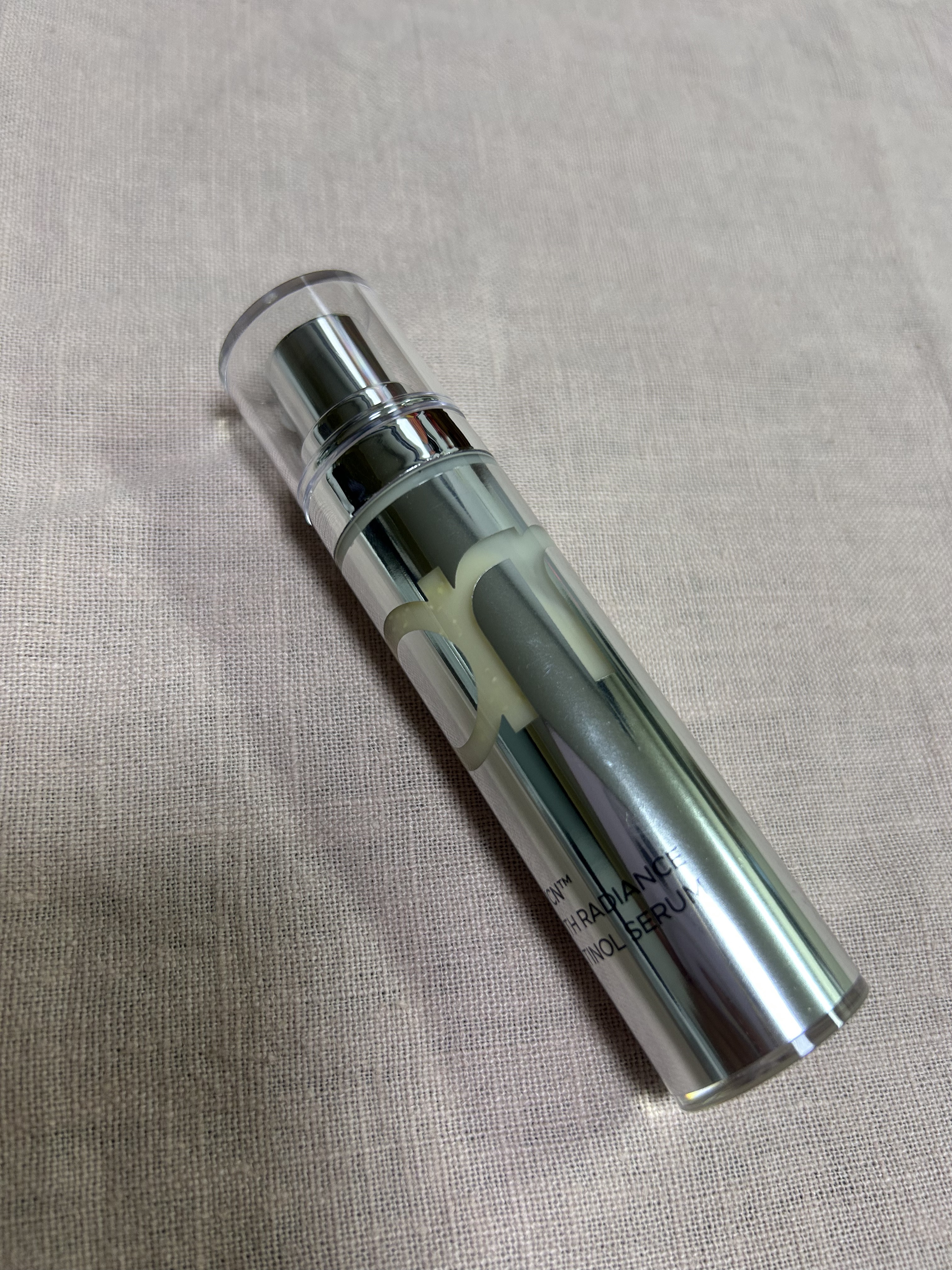 シルバーのボトルは、とってもオシャレ カプセルパートとセラムパートで分かれているのでふたを開け、カチッと音がするまでポンプを押し、最初に使用するときは、カプセルが溶けてセラムとよく混ざるように30秒以上、上下に振り、5分ほど立てておき、お肌になじませます。 ビタミンC+レチノールを実現したセラムはビタミンCカプセルとピュアレチノールの革新的な組み合わせで、毛穴や弾力などの肌の状態をケアし、健康的で美しい肌へと導くことができます。 やっぱり、別々に使ってたビタミンCとレチノールが一緒に使えるのはうれしい!