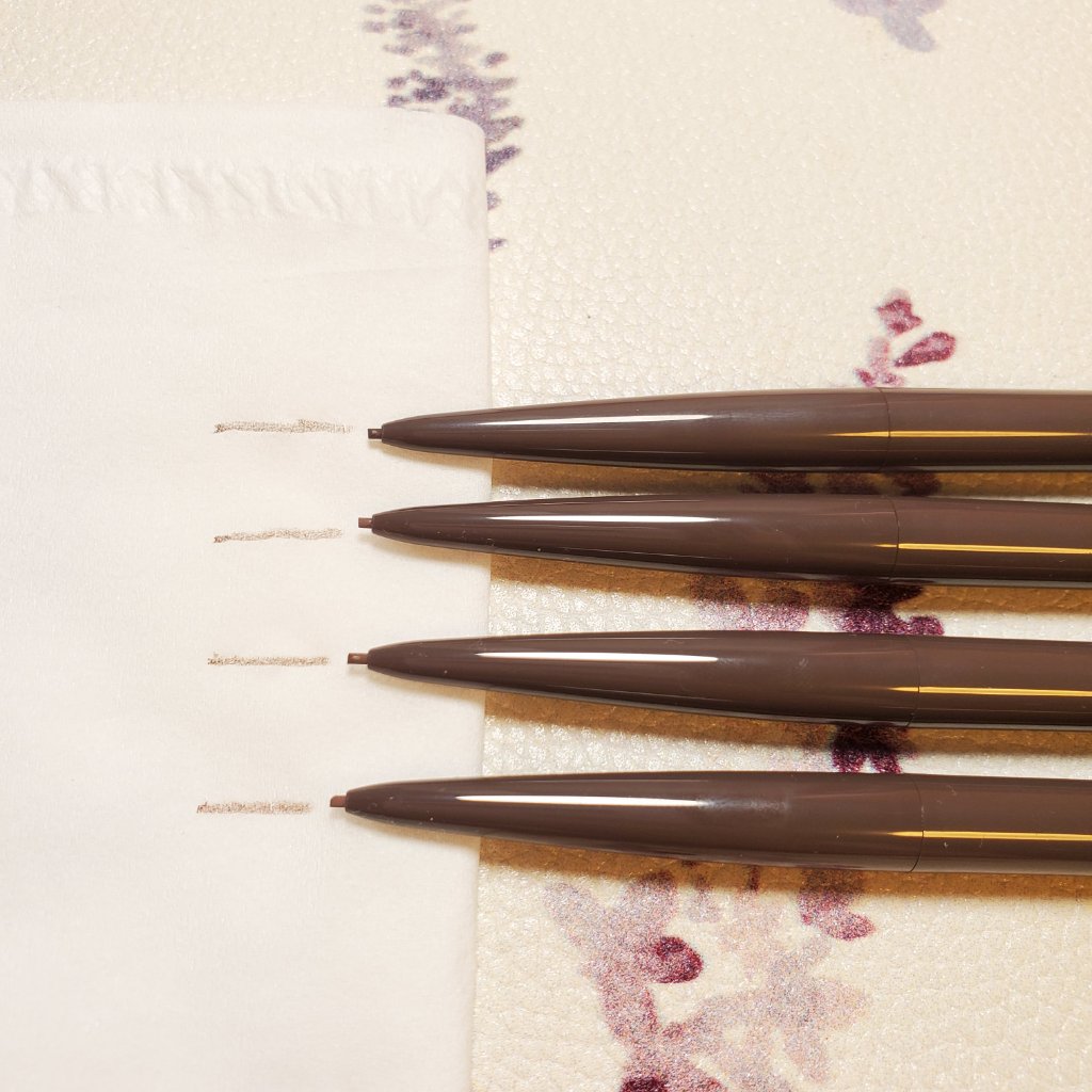 描き分け、自在の超極細アイブローペンシルなんだって。 高密着&なめらかな描き心地 体温で溶けるワックス配合で、するする描けてピタッと密着するそうです。 水、汗、擦れに強く、落ちにくいんだって。スクリューブラシがついてるので、ラインをぼかしたり、毛流れを整えることができますね。