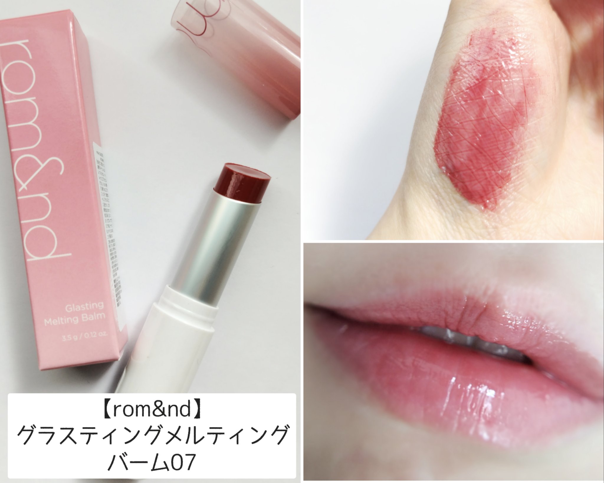 rom&ndグラスティングメルティングバーム07モーブホイップMauveWhip◇香りマンゴーのような甘めの香りがします🥭◇質感体温で簡単にとろけるくらい柔らかく、かなり濃密で保湿力が高いです◎重ための質感でベタつきもあるので好みは分かれる使...