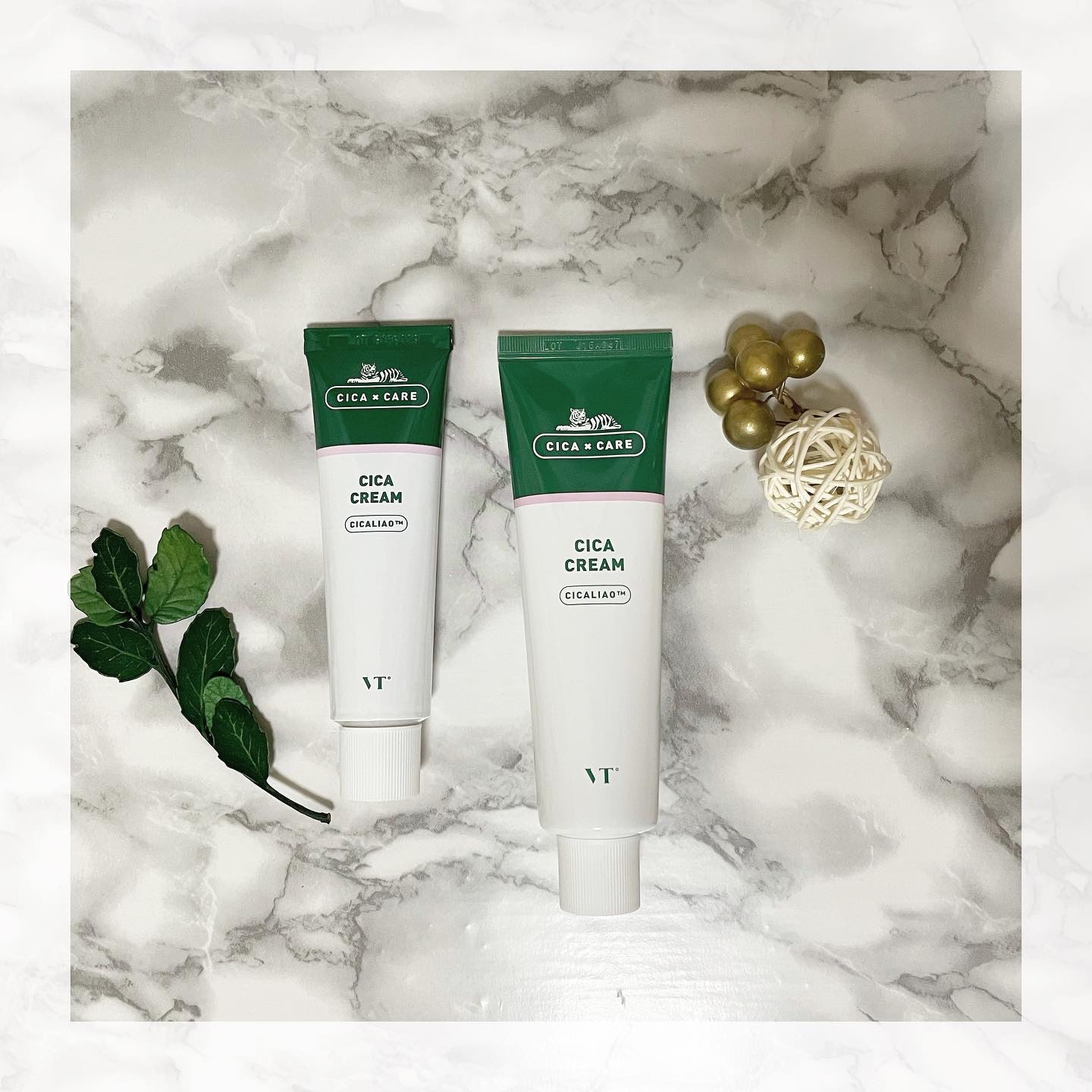 わたくしの大好きなVTのCICAクリーム✨ 気付いたら3本持っててビビる… これ、乾燥だったり吹き出物だったりで肌の治安が悪い時でも安心して使えるし、かなり鎮静してくれるから気に入っておる◎ しっかり保湿されるけどベタベタ感は残らないから、春夏も使いやすいと思うよ~♪