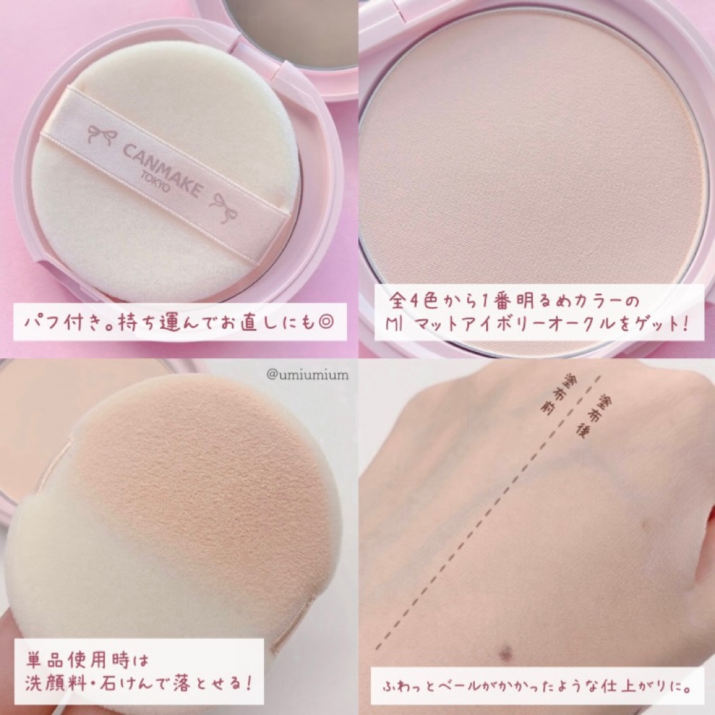これ以外使えないかも、、。◻︎キャンメイクマシュマロフィニッシュパウダーMIマットアイボリーオークル下地→ファンデ→このパウダーでめちゃくちゃ肌綺麗に見えるし、なにより皮脂崩れの悩みがなくなった♡ミニサイズ購入したから持ち運びにも便利だし、こ...