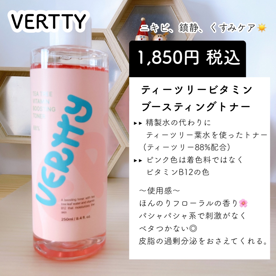 『ティーツリー88%ビタミンブースティングトナー』精製水の代わりにティーツリー葉水88%含まれていて刺激を受けて敏感になった肌を優しく労わってくれるトナー💕肌に元気がなくくすみがちな時にもおすすめだよ!ピンク色はビタミンB12の色なんだって🩷...