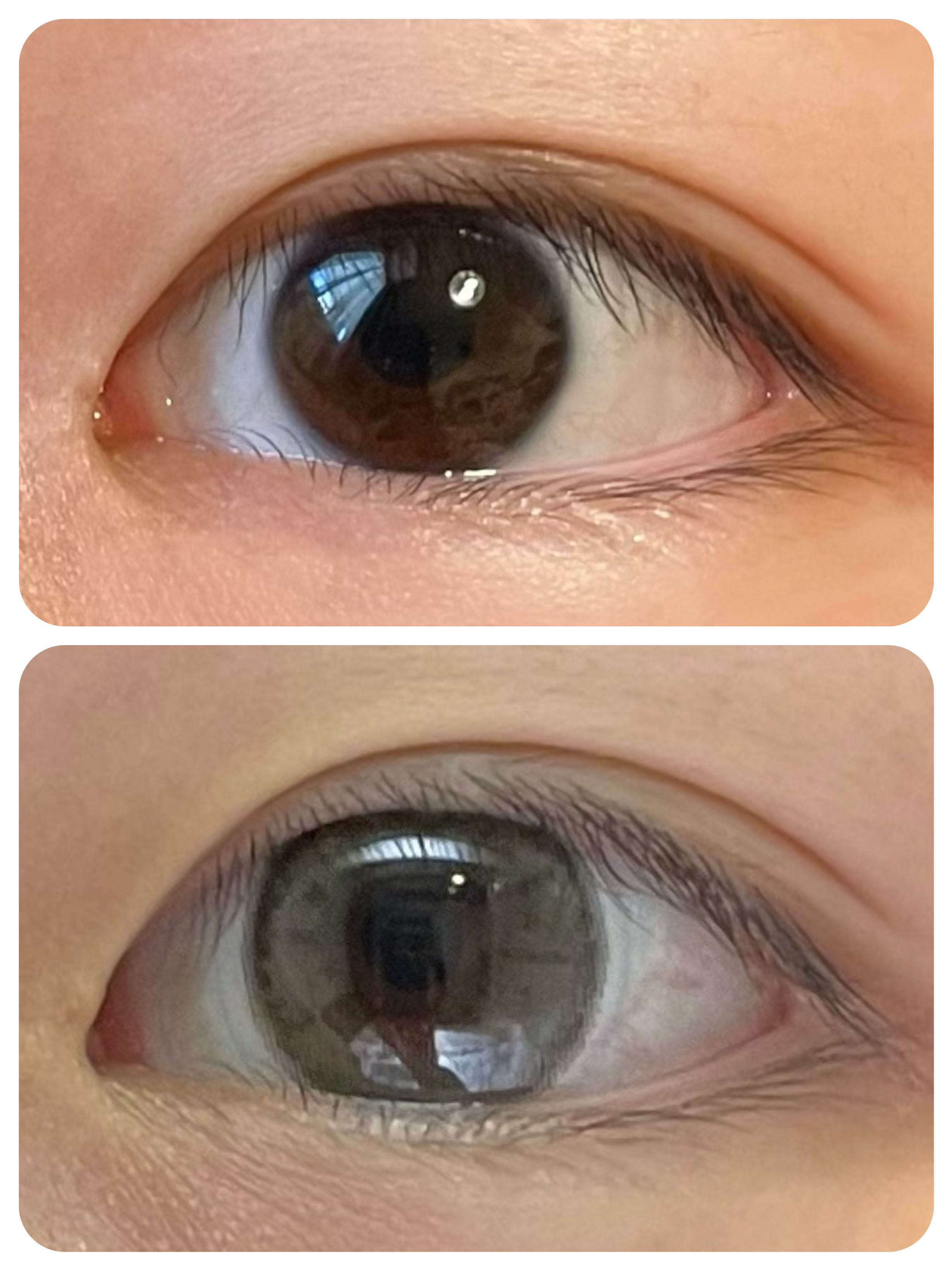 水光コンタクトのブラック 中と色の差があまりないからフチは目立たない、輪郭がはっきりする程度 ベルベージュよりも水光感は目立たなくてよりナチュラル OLENS グローイのブラックに似てる