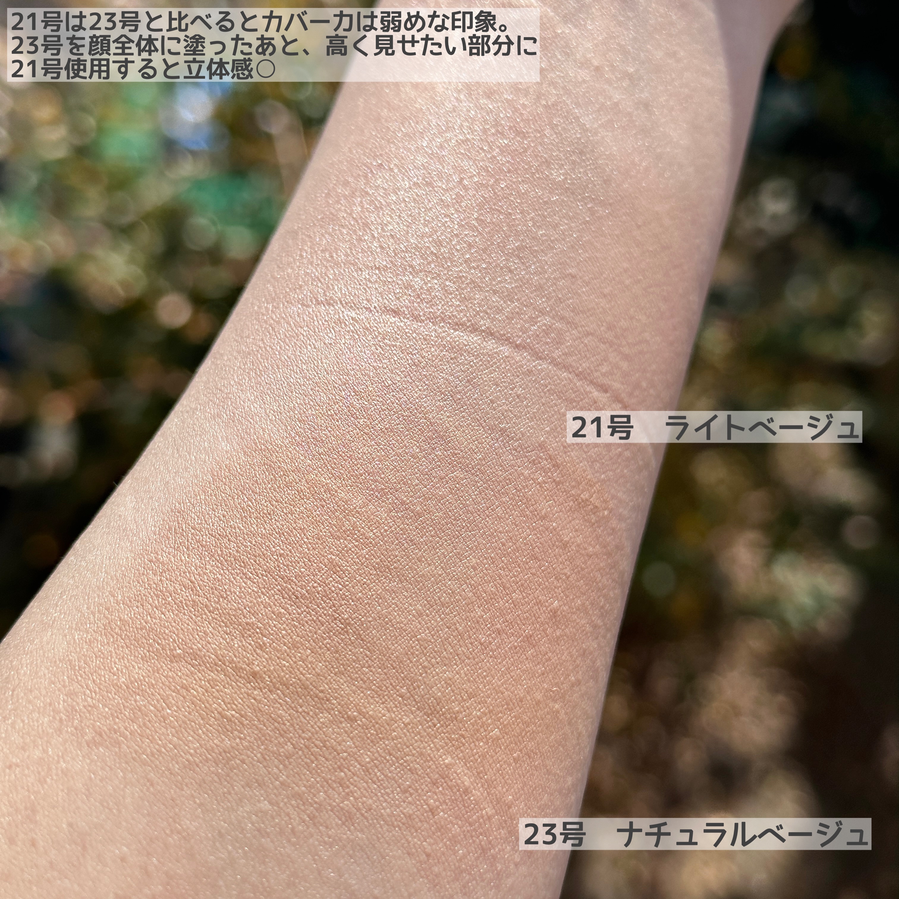 - <23 ナチュラルベージュ 本体> 水、酸化チタン (CI 77891)、フェニルトリメチコン、イソノナン酸イソノニル、シクロペンタシロキサン、BG、グリセリン、メトキシケイヒ酸エチルヘキシル、セチルPEG/PPG-10/1ジメチコン、酸化亜鉛 (CI 77947)、トリ(カプリル酸/カプリン酸)グリセリル、ナイアシンアミド、シクロヘキサシロキサン、1,2-ヘキサンジオール、ジステアルジモニウムヘクトライト、ビス(PEG/PPG-14/14)ジメチコン、酸化鉄 (CI 77492)、硫酸Mg、ステアリン酸イヌリン、トリ(ベヘン酸/イソステアリン酸/エイコサン二酸)グリセリル、(アクリレーツ/メタクリル酸ポリトリメチルシロキシ)コポリマー、ジイソステアリン酸ポリグリセリル-2、合成フルオロフロゴパイト、水酸化Al、酸化鉄 (CI 77491)、ステアリン酸、トリエトキシカプリリルシラン、(セテアリルジメチコン/ビニルジメチコン)クロスポリマー、酸化鉄 (CI 77499)、エチルヘキシルグリセリン、ツボクサエキス、カミツレ花、カプリル酸グリセリル、ジメチコン、香料、アデノシン、EDTA-2Na、マンニトール、カプリリルグリコール、合成ヒト遺伝子組換オリゴペプチド-1 <21 ライトベージュ 本体> 水、酸化チタン、フェニルトリメチコン、イソノナン酸イソノニル、シクロペンタシロキサン、BG、グリセリン、メトキシケイヒ酸エチルヘキシル、セチルPEG/PPG-10/1ジメチコン、酸化亜鉛、トリ(カプリル酸/カプリン酸)グリセリル、ナイアシンアミド、シクロヘキサシロキサン、1,2-ヘキサンジオール、ジステアルジモニウムヘクトライト、合成フルオロフロゴパイト、ビス(PEG/PPG-14/14)ジメチコン、硫酸Mg、ステアリン酸イヌリン、トリ(ベヘン酸/イソステアリン酸/エイコサン二酸)グリセリル、酸化鉄、(アクリレーツ/メタクリル酸ポリトリメチルシロキシ)コポリマー、ジイソステアリン酸ポリグリセリル-2、水酸化Al、ステアリン酸、(セテアリルジメチコン/ビニルジメチコン)クロスポリマー、トリエトキシカプリリルシラン、エチルヘキシルグリセリン、ツボクサエキス、カミツレ花、カプリル酸グリセリル、ジメチコン、香料、アデノシン、EDTA-2Na、マンニトール、カプリリルグリコール、合成ヒト遺伝子組換オリゴペプチド-1 <22 ミディアムベージュ 本体> 水、酸化チタン、フェニルトリメチコン、イソノナン酸イソノニル、BG、グリセリン、メトキシケイヒ酸エチルヘキシル、シクロペンタシロキサン、セチルPEG/PPG-10/1ジメチコン、酸化亜鉛、トリ(カプリル酸/カプリン酸)グリセリル、ナイアシンアミド、シクロヘキサシロキサン、1,2-ヘキサンジオール、ジステアルジモニウムヘクトライト、イソドデカン、合成フルオロフロゴパイト、ビス(PEG/PPG-14/14)ジメチコン、(アクリレーツ/メタクリル酸ポリトリメチルシロキシ)コポリマー、ステアリン酸イヌリン、硫酸Mg、酸化鉄、トリ(ベヘン酸/イソステアリン酸/エイコサン二酸)グリセリル、ジイソステアリン酸ポリグリセリル-2、カプリル酸グリセリル、水酸化Al、ステアリン酸、ジメチコン、(セテアリルジメチコン/ビニルジメチコン)クロスポリマー、トリエトキシカプリリルシラン、エチルヘキシルグリセリン、ツボクサエキス、カミツレ花、香料、アデノシン、EDTA-2Na、マンニトール、カプリリルグリコール、合成ヒト遺伝子組換オリゴペプチド-1