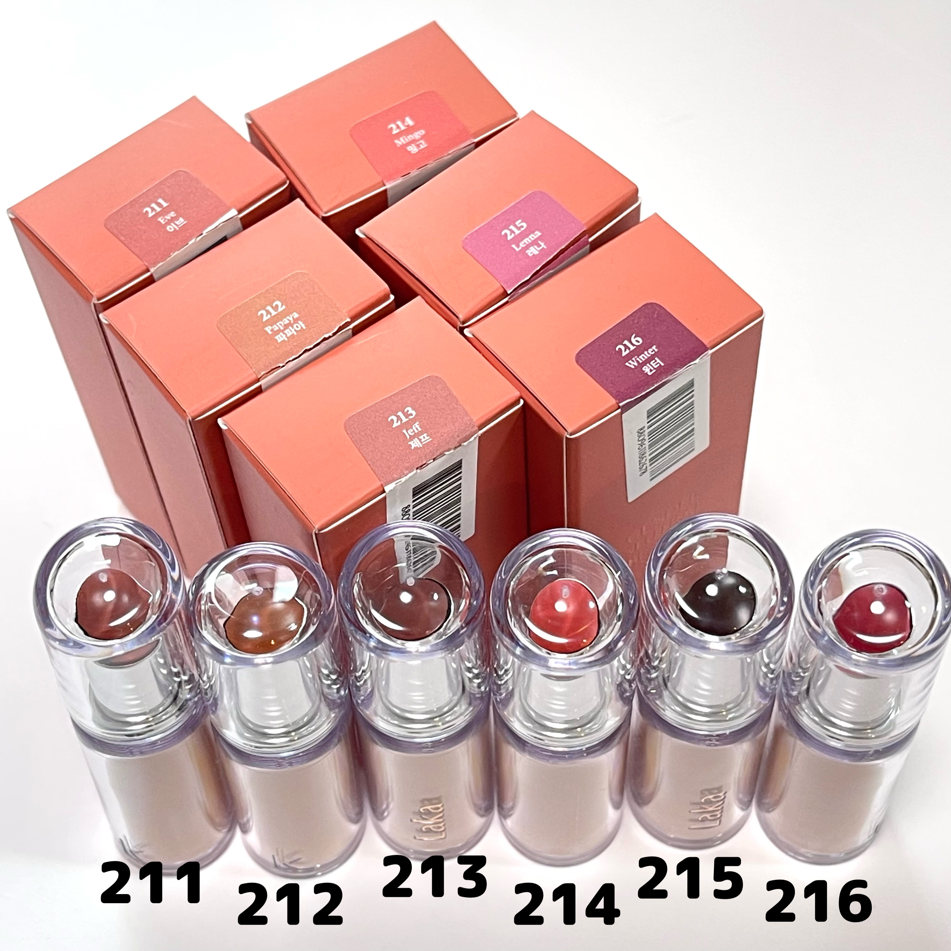 - Point1 透き通った気品が感じられるカラー ユニークなヌードカラーから自然なニュートラルカラー、深くて密度のあるポイントカラーまで、さまざまな好みに合わせた幅広いカラーバリエーション。それぞれのカラーが持つ明度や彩度に合わせて透明感を細かく調整しているため、グラデーションリップやオーバリップなど、プロが施したようなさまざまなリップメイクが楽しめます。また、夕方の暗い空間や、室内の光の下でも、唇本来の色にリップスティックのカラーが馴染み、水彩画のようなナチュラルな発色で、自然な血色感のある唇に演出します。 Point2 光に包まれたガラス玉のようなきらめき Lakaならではの「ボンディンググロウ」フォーミュラで、唇に触れた瞬間、体温でやさしく溶けていくようなテクスチャー。しっとりと馴染んで密着しながら唇をコーティングしてくれます。高い屈折率で光を強く反射させるハイシャインオイルコンプレックスを配合し、光沢感のある生き生きとしたリップカラーを実現しました。
