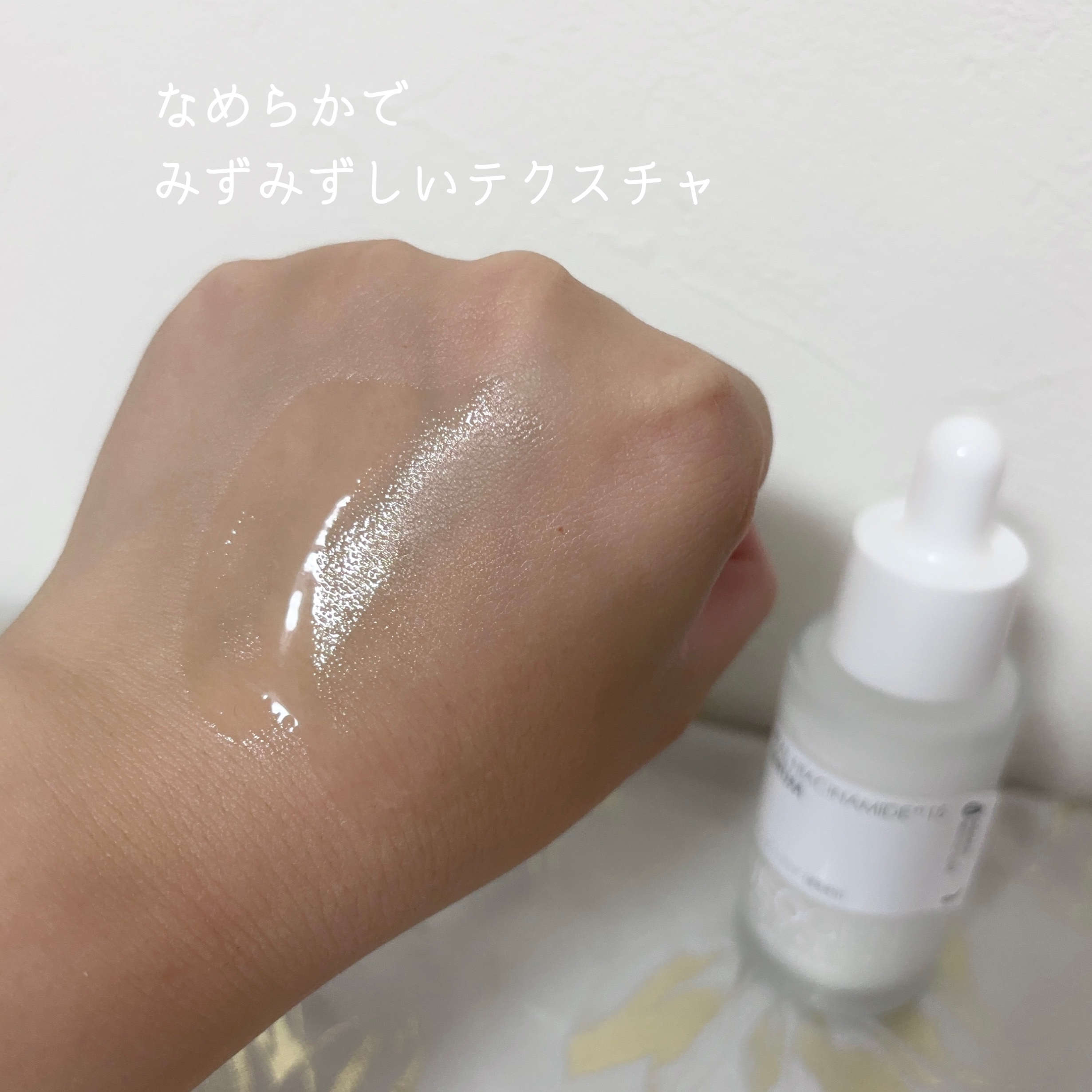 ナイアシンアミド15%配合で肌のくすみにアプローチ🤍 テクスチャーはややとろみ、柔らかく伸び肌なじみがよくベタつきなし! キメが整いもっちり仕上がり 香りもなく使いやすい︎👍🏻 ̖́- 高配合でこの使いやすさはとてもありがたい🥹💗 リピして使い続けたいです✨️