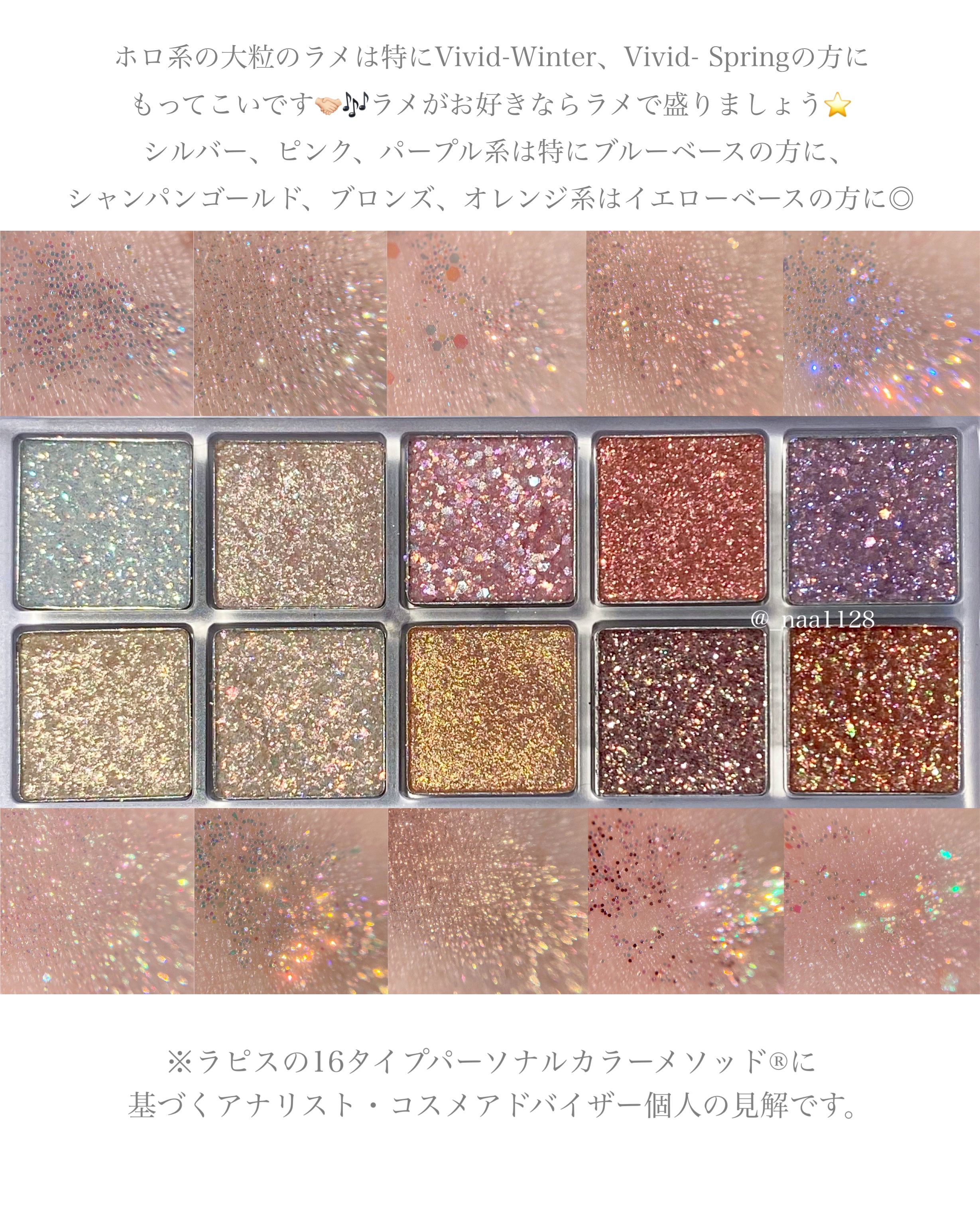 - 多彩なカラーを重ねて私だけのカラーレイヤリング 細分化された明度で混じり気のない陰影を楽しめます。 カラーは5段階の明度に分かれているので、 私だけの多様な仕上がりに。 MATTE パーソナルカラーに合わせたカラー GULITTERS 特別な粒子、カラーが作る立体的な輝き