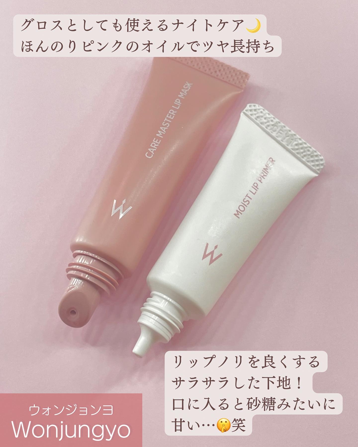 WonjungyoモイストリッププライマーP(限定パッケージ)9mL / ¥1,430 WonjungyoケアマスターリップマスクP(限定パッケージ)/メロメロチェリー(限定色)9g / ¥1,430 #韓国コスメ #パケ萌えコスメ #胸キュンコスメ特集