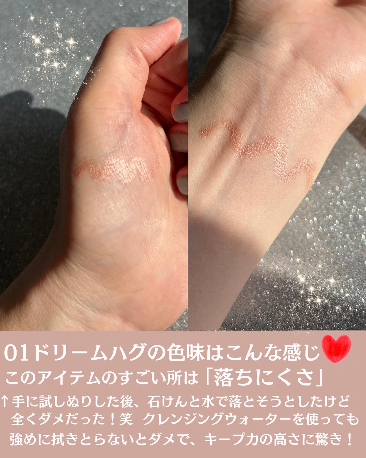 - <01ドリームハグ> トリメチルシロキシケイ酸、メチルトリメチコン、トリ脂肪酸(C10-18)グリセリル、合成フルオロフロゴパイト、合成ワックス、ジフェニルシロキシフェニルトリメチコン、ペンタイソステアリン酸ジペンタエリスリチル、水添ヒマシ油、セスキイソステアリン酸ソルビタン、カルナウバロウ、トコフェロール、水酸化Al、トリ(カプリル酸/カプリン酸)グリセリル、マカデミア種子油、シリカ、ヒアルロン酸Na、メチコン、マイカ、酸化チタン、ホウケイ酸(Ca/Al)、酸化鉄、黄4、赤202、グンジョウ <02サンドムーン> トリメチルシロキシケイ酸、メチルトリメチコン、トリ脂肪酸(C10-18)グリセリル、合成フルオロフロゴパイト、合成ワックス、ジフェニルシロキシフェニルトリメチコン、ペンタイソステアリン酸ジペンタエリスリチル、水添ヒマシ油、セスキイソステアリン酸ソルビタン、カルナウバロウ、トコフェロール、水酸化Al、トリ(カプリル酸/カプリン酸)グリセリル、マカデミア種子油、シリカ、ヒアルロン酸Na、メチコン、マイカ、酸化チタン、ホウケイ酸(Ca/Al)、黄4、酸化鉄、赤202、グンジョウ <03ブロンズベージュ> トリメチルシロキシケイ酸、メチルトリメチコン、トリ脂肪酸(C10-18)グリセリル、合成フルオロフロゴパイト、合成ワックス、ジフェニルシロキシフェニルトリメチコン、ペンタイソステアリン酸ジペンタエリスリチル、水添ヒマシ油、セスキイソステアリン酸ソルビタン、カルナウバロウ、トコフェロール、トリ(カプリル酸/カプリン酸)グリセリル、水酸化Al、マカデミア種子油、シリカ、ヒアルロン酸Na、メチコン、マイカ、酸化チタン、酸化鉄 <04 リコッタピーチ> トリメチルシロキシケイ酸、メチルトリメチコン、合成フルオロフロゴパイト、トリ脂肪酸(C10-18)グリセリル、リンゴ酸ジイソステアリル、合成ワックス、ジフェニルシロキシフェニルトリメチコン、ペンタイソステアリン酸ジペンタエリスリチル、カルナウバロウ、水添ヒマシ油、セスキイソステアリン酸ソルビタン、水酸化Al、トコフェロール、トリ(カプリル酸/カプリン酸)グリセリル、マカデミア種子油、シリカ、ヒアルロン酸Na、メチコン、酸化チタン、マイカ、酸化鉄 <05バニラヴェール> トリメチルシロキシケイ酸、メチルトリメチコン、トリ脂肪酸(C10-18)グリセリル、合成フルオロフロゴパイト、合成ワックス、ジフェニルシロキシフェニルトリメチコン、ペンタイソステアリン酸ジペンタエリスリチル、リンゴ酸ジイソステアリル、カルナウバロウ、水添ヒマシ油、セスキイソステアリン酸ソルビタン、トコフェロール、トリ(カプリル酸/カプリン酸)グリセリル、水酸化Al、マカデミア種子油、シリカ、ヒアルロン酸Na、メチコン、マイカ、酸化チタン、酸化鉄、グンジョウ