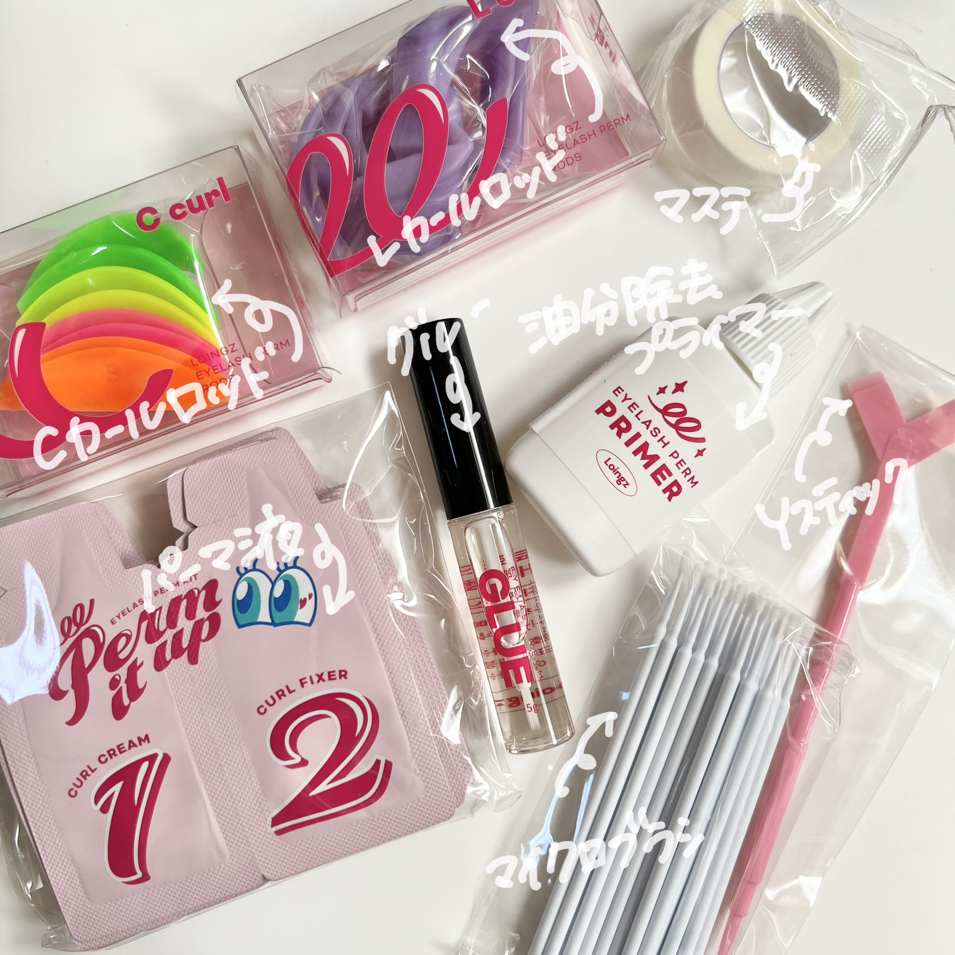 自宅でまつ毛パーマが出来るよ✨️ 必要な物が全て揃っていて、日本語の説明書付き。 CカールとLカールの選べるロッドにサイズも豊富🫶 翌日もしっかりカールしていて嬉しいです🙌