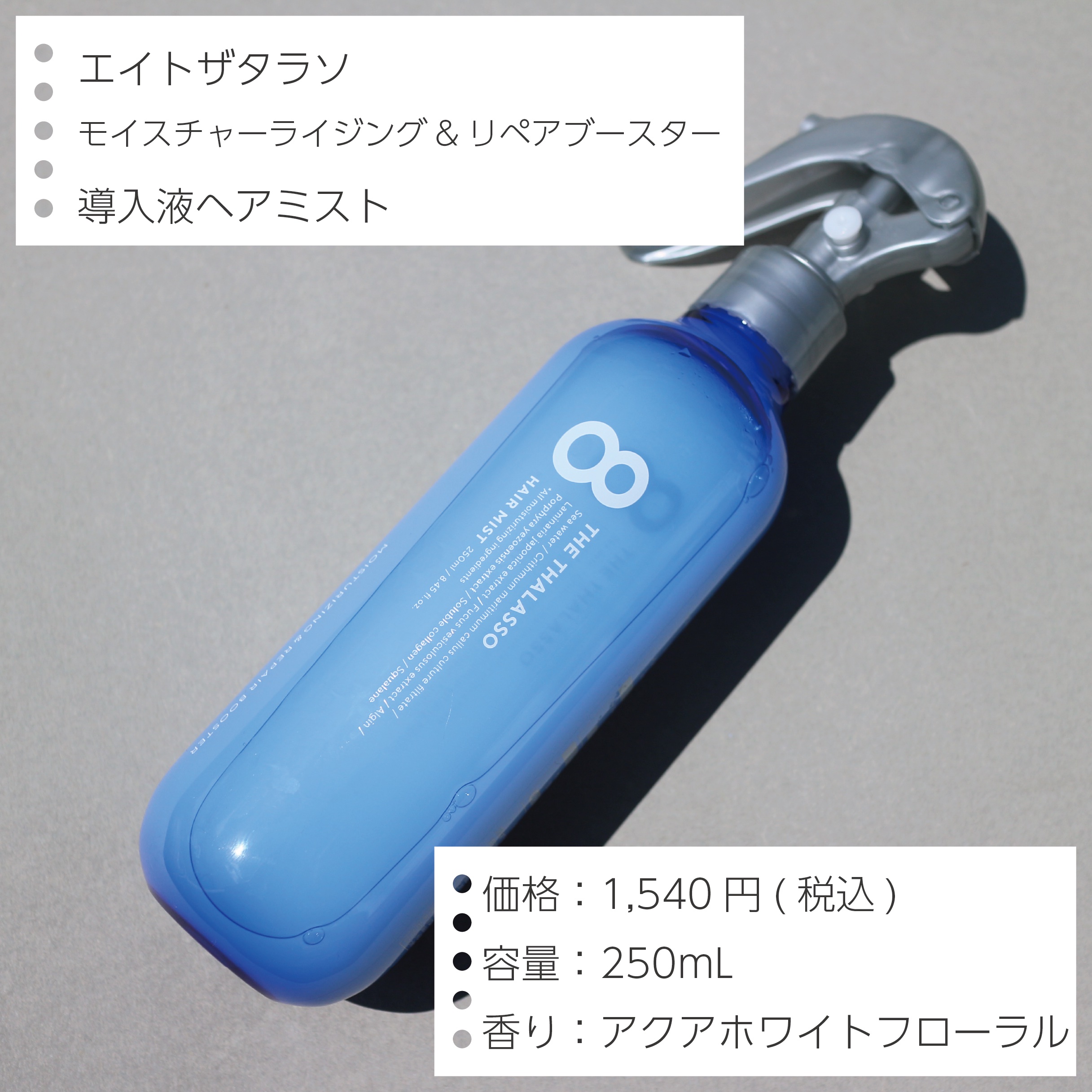 エイトザタラソ モイスチャーライジング&リペアブースター 導入液ヘアミスト | 1,540円 |