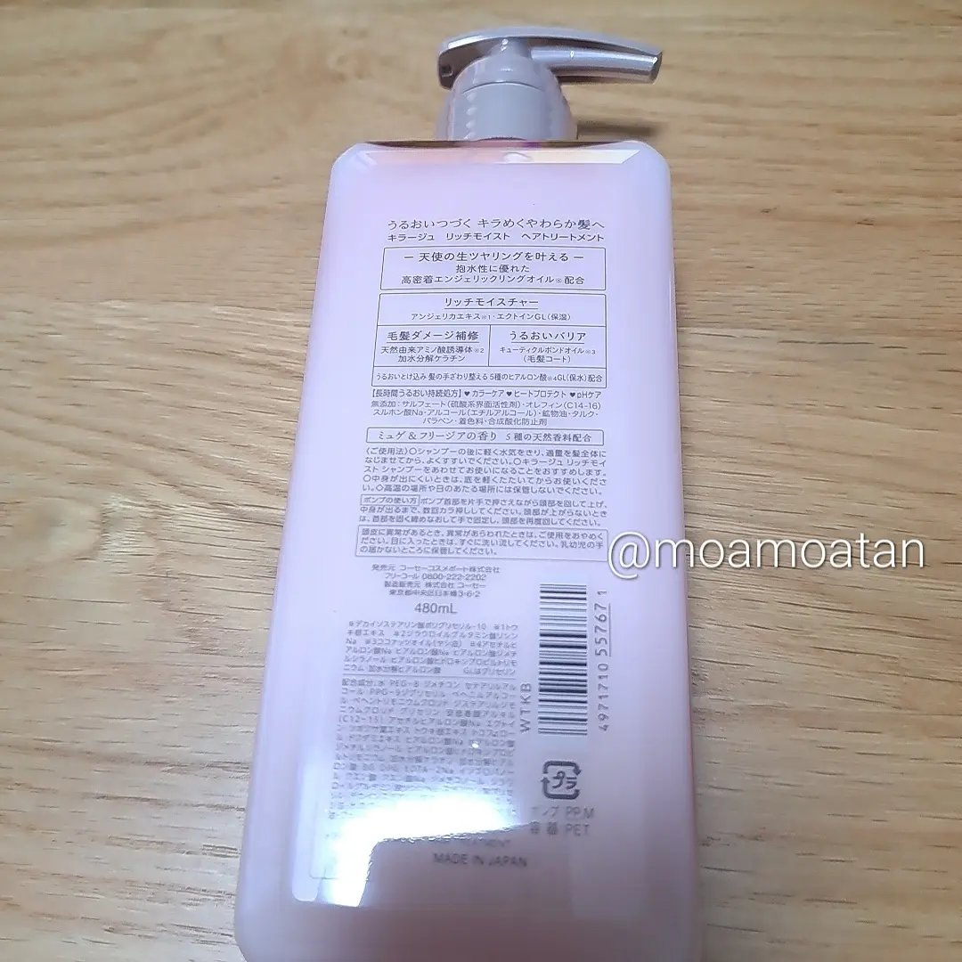 キラージュリッチモイストシャンプー/ヘアトリートメントキラージュさまからいただきました💛まず、パケが可愛すぎて🥺💗💗ピンクでテンションあがる✨エンジェリックリングオイルがたっぷりとうるおいを抱えて、とじこめ、コートすることで、内側から光を放つ...