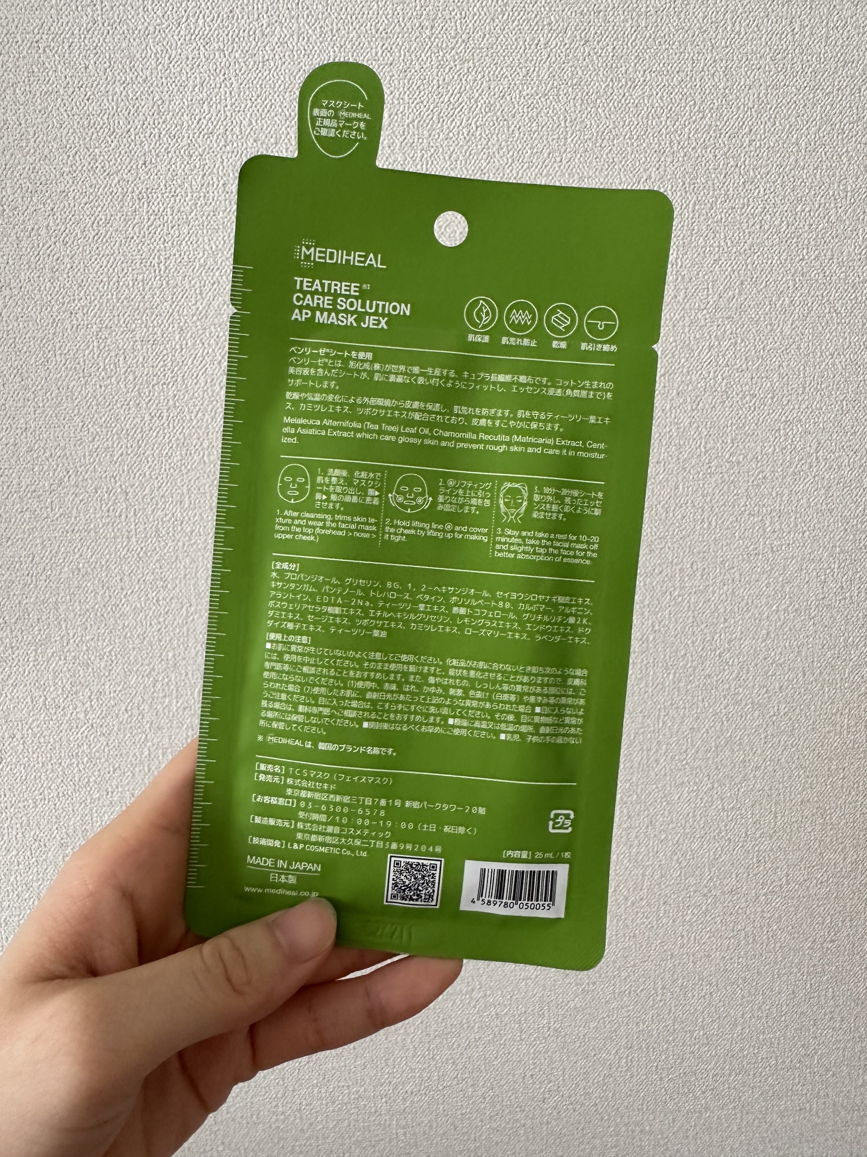 メディヒールの言わずと知れた名品。鎮静効果のあるティーツリーのフェイスマスク! 肌荒れしているときや、日焼けした後におすすめです。 使用感はさっぱりで、これだけでは保湿力が物足りないためクリームなどで蓋をすると良いと思います!