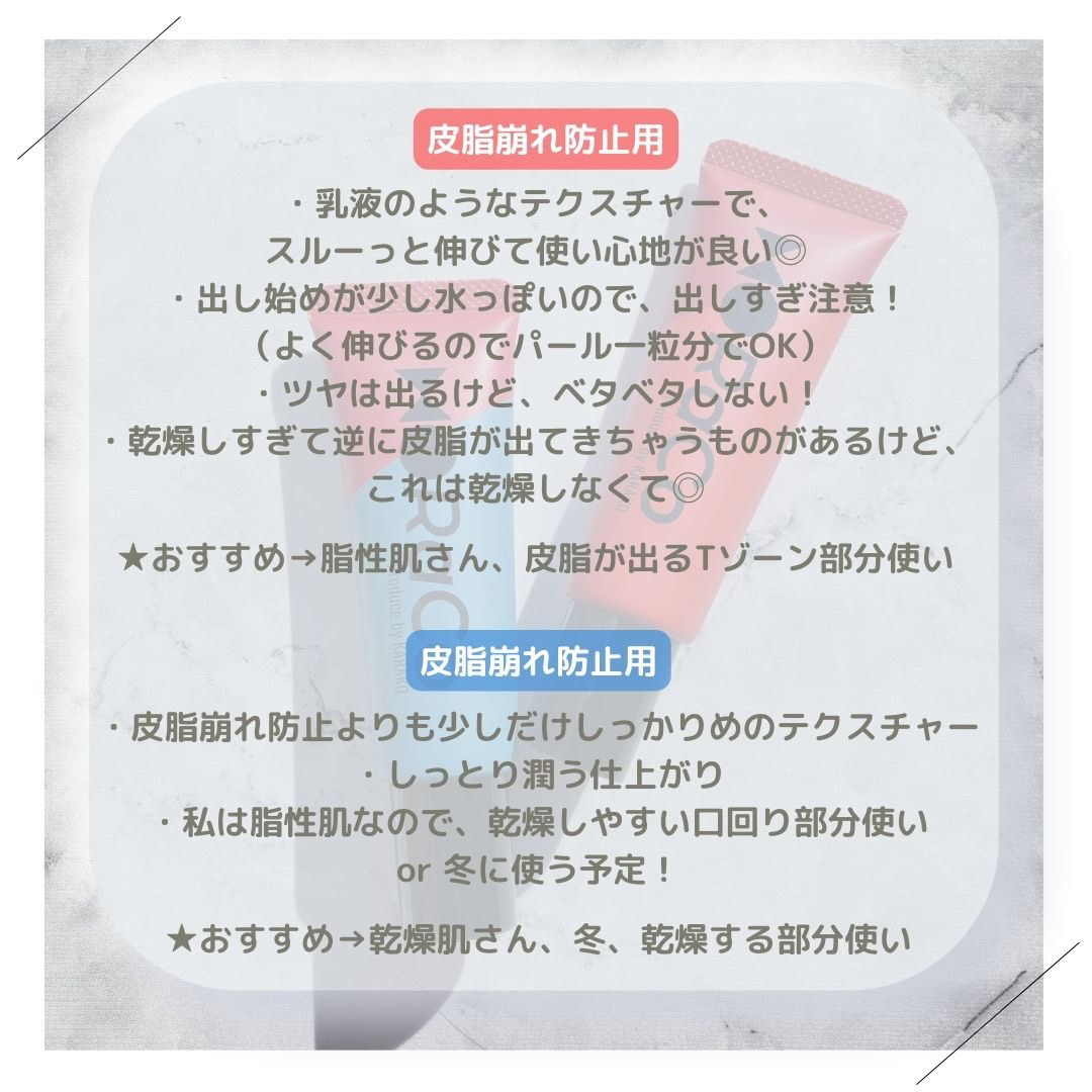 | ベースメイクランキング第49位 | スキンケアの延長のような重すぎないテクスチャーで しっかり保湿してくれるのに なぜかベタつかない不思議な下地🌱 | 詳細を見る | |