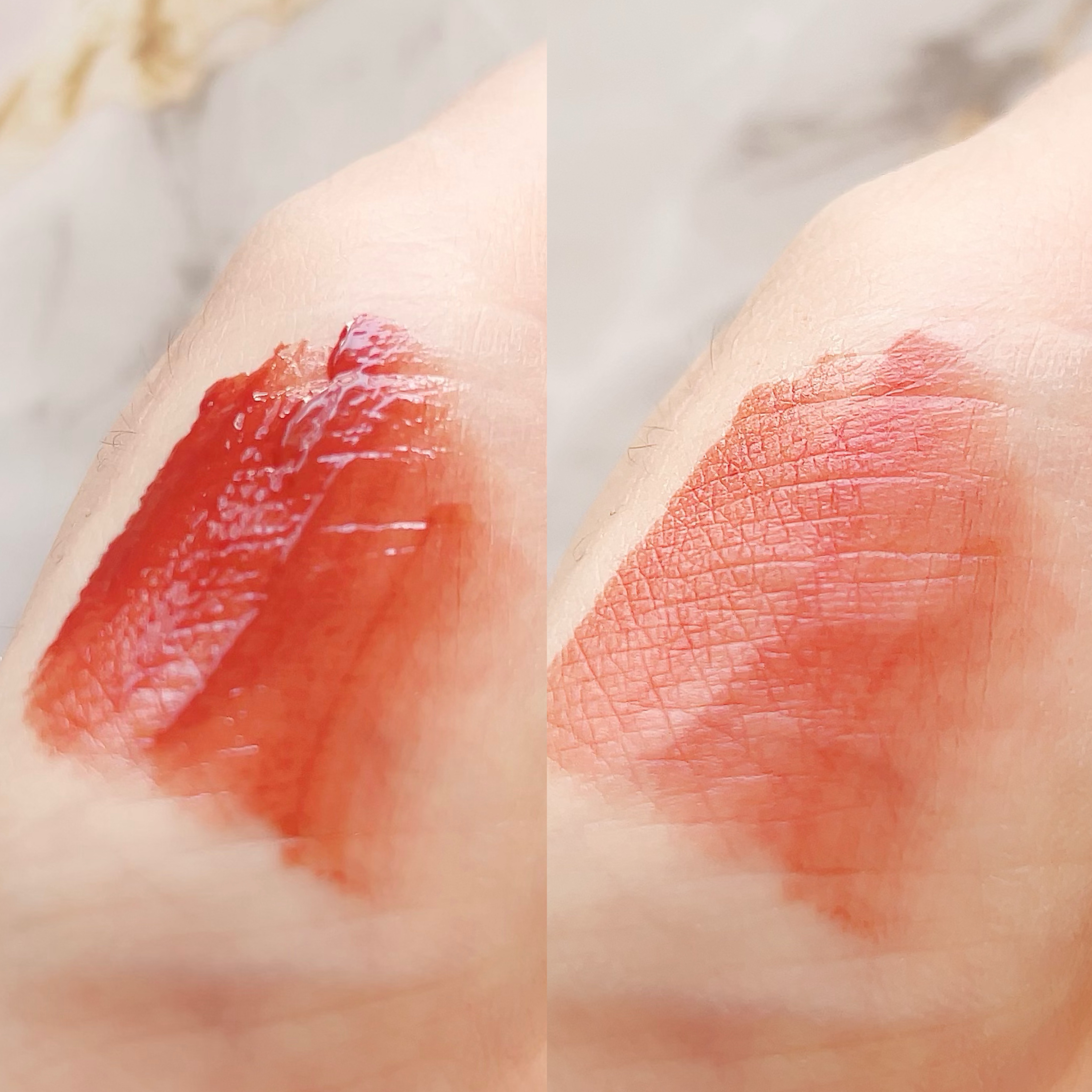 パラドゥのリキッドティントリップ RD01番フィグ レッド系のカラーです。クオリティの高いものが多くてかなりオススメのブランド。 かなりサラッとしたみずみずしいテクスチャーで唇にじんわり馴染んでジュワッとした仕上がりになります。 落ち着いた肌馴染みの良いレッドという感じで2度塗りしても濃すぎないデイリー使いしやすい色味なんです。