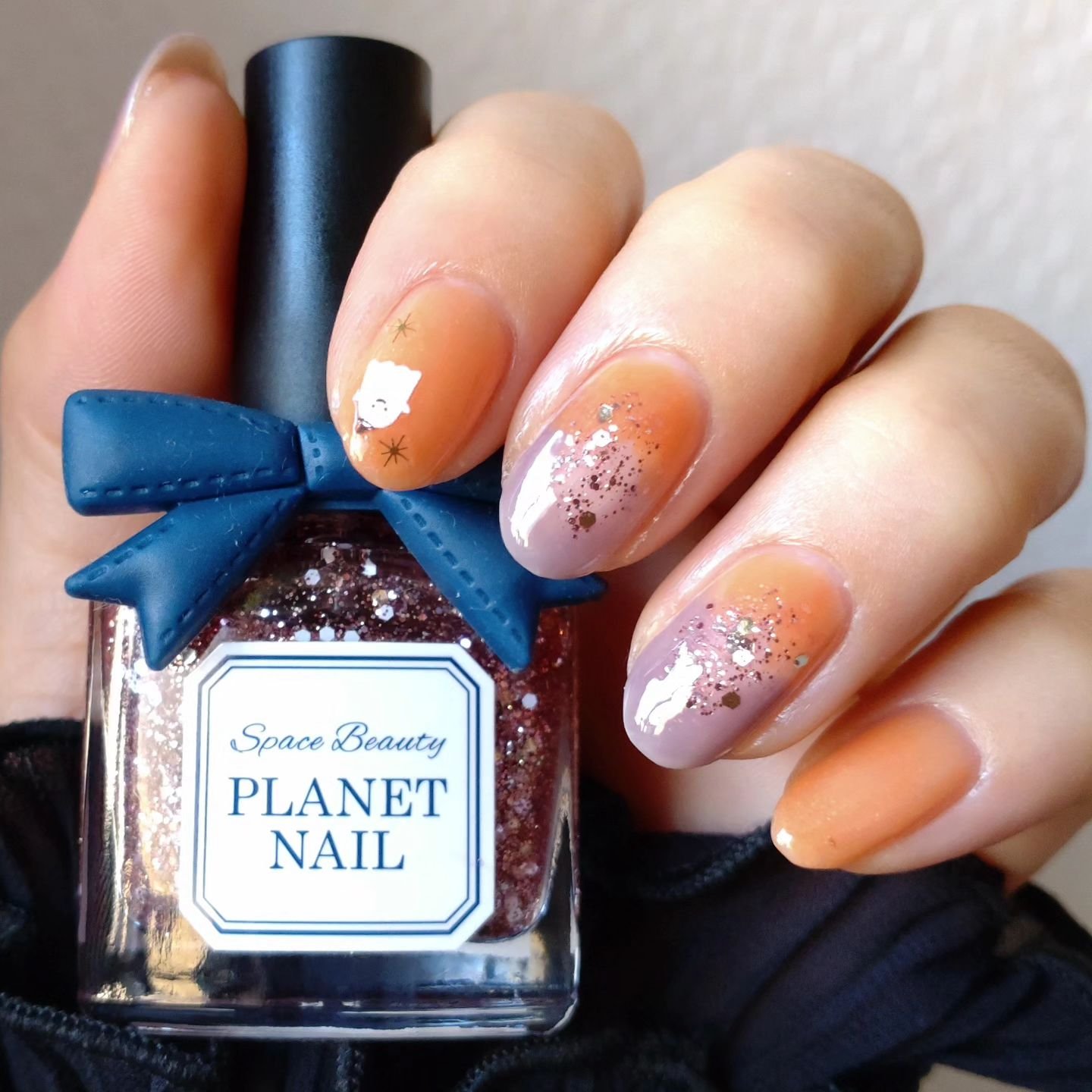 本当はべっ甲風にしたかったけど濃淡が上手く作れなくて😆よーく見るともやもやしてます👀 でも、ロムアンド(@romand_jp )の アンバー 09 がめちゃくちゃ良い🤎✨✨ 透明感あってちゅるんちゅるん❣️ 奥行き出したいなーと、パラドゥ(@parado_nailbu )の リトルジュエリーコフレ から グリッターネイルPK スパークルルビー を、アンバーの下と上の2回に分けて置いてます💖