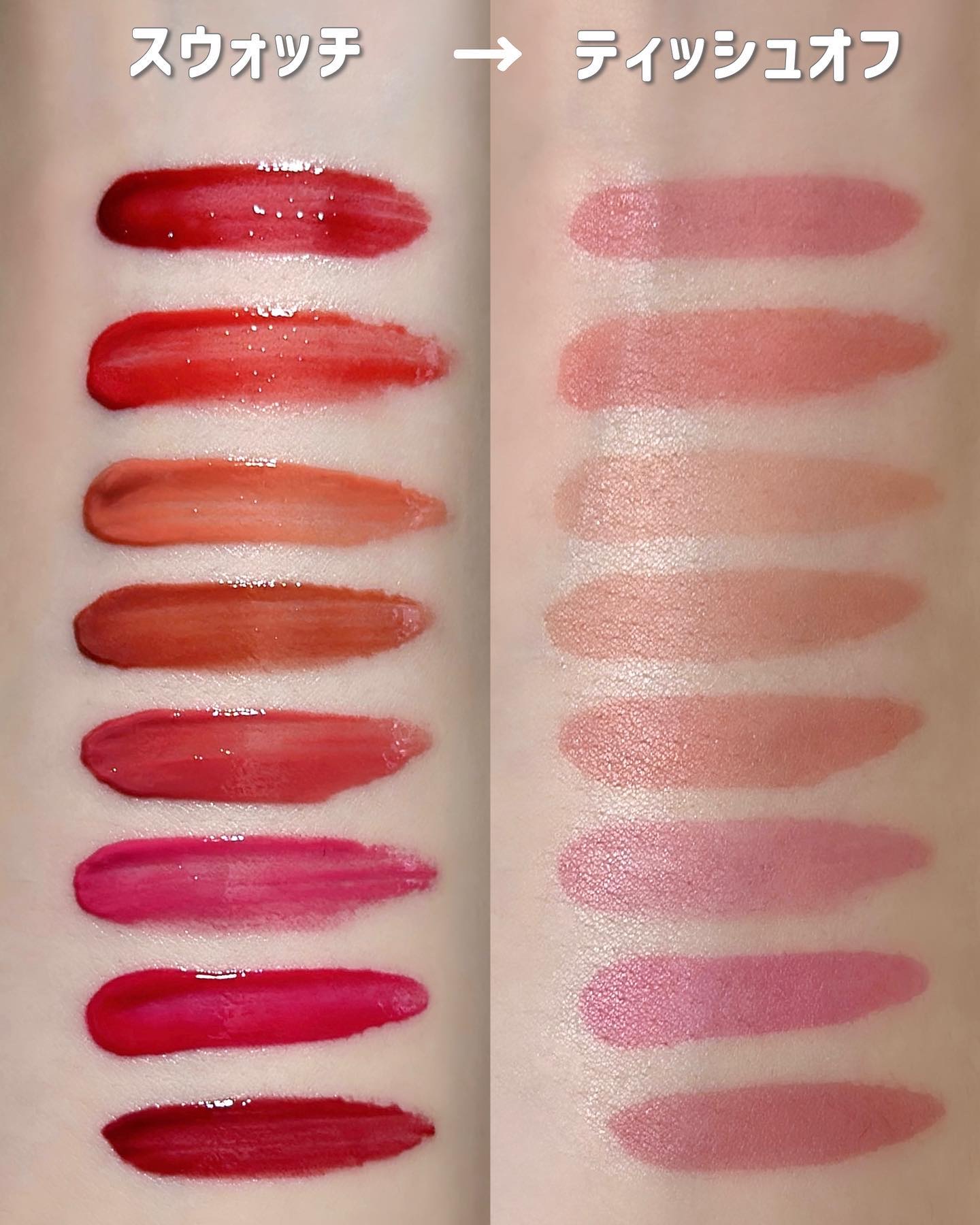 - <01 アモリスト(AMORIST)> リンゴ酸ジイソステアリル、ジフェニルシロキシフェニルトリメチコン、水、ジフェニルジメチコン、ビスジグリセリルポリアシルアジペート-2、水添ポリイソブテン、ポリグリセリン-3、ポリソルベート60、セチルPEG/PPG-10/1ジメチコン、イソステアリン酸ソルビタン、BG、ペンチレングリコール、1,2-ヘキサンジオール、ジメチコン、(アクリル酸ヒドロキシエチル/アクリロイルジメチルタウリンNa)コポリマー、セテアレス-20、スクワラン、黄5、エチルヘキシルグリセリン、香料、赤227、赤104(1)、リナロール、青1、ヘキシルシンナマル、リモネン、ホホバ種子油、アンズ核油、ツバキ種子油、トコフェロール <02 ビーミッシュ(BEAMISH)> リンゴ酸ジイソステアリル、ジフェニルシロキシフェニルトリメチコン、水、ビスジグリセリルポリアシルアジペート-2、ジフェニルジメチコン、水添ポリイソブテン、ポリグリセリン-3、ポリソルベート60、セチルPEG/PPG-10/1ジメチコン、イソステアリン酸ソルビタン、BG、1,2-ヘキサンジオール、ジメチコン、ペンチレングリコール、(アクリル酸ヒドロキシエチル/アクリロイルジメチルタウリンNa)コポリマー、セテアレス-20、スクワラン、酸化チタン、黄5、エチルヘキシルグリセリン、香料、赤227、赤104(1)、リナロール、水酸化Al、ポリアクリル酸アンモニウム、フェノキシエタノール、ヘキシルシンナマル、リモネン、アンズ核油、ツバキ種子油、ホホバ種子油、トコフェロール <03 ピロウィ(PILLOWY)> リンゴ酸ジイソステアリル、ジフェニルシロキシフェニルトリメチコン、水、ビスジグリセリルポリアシルアジペート-2、ジフェニルジメチコン、水添ポリイソブテン、ポリグリセリン-3、ポリソルベート60、セチルPEG/PPG-10/1ジメチコン、イソステアリン酸ソルビタン、BG、ジメチコン、ペンチレングリコール、1,2-ヘキサンジオール、(アクリル酸ヒドロキシエチル/アクリロイルジメチルタウリンNa)コポリマー、セテアレス-20、スクワラン、酸化チタン、エチルヘキシルグリセリン、黄5、香料、赤104(1)、水酸化Al、ポリアクリル酸アンモニウム、赤227、リナロール、フェノキシエタノール、青1、ヘキシルシンナマル、リモネン、アンズ核油、ツバキ種子油、ホホバ種子油、トコフェロール <04 ブラント(BLUNT)> リンゴ酸ジイソステアリル、ジフェニルシロキシフェニルトリメチコン、水、ビスジグリセリルポリアシルアジペート-2、ジフェニルジメチコン、水添ポリイソブテン、ポリグリセリン-3、ポリソルベート60、セチルPEG/PPG-10/1ジメチコン、イソステアリン酸ソルビタン、BG、1,2-ヘキサンジオール、ジメチコン、ペンチレングリコール、(アクリル酸ヒドロキシエチル/アクリロイルジメチルタウリンNa)コポリマー、セテアレス-20、スクワラン、酸化チタン、黄5、エチルヘキシルグリセリン、香料、赤227、水酸化Al、ポリアクリル酸アンモニウム、リナロール、フェノキシエタノール、青1、ヘキシルシンナマル、リモネン、ホホバ種子油、アンズ核油、ツバキ種子油、トコフェロール <05 スウィッシュ(SWISH)> リンゴ酸ジイソステアリル、ジフェニルシロキシフェニルトリメチコン、水、ビスジグリセリルポリアシルアジペート-2、ジフェニルジメチコン、水添ポリイソブテン、ポリグリセリン-3、ポリソルベート60、セチルPEG/PPG-10/1ジメチコン、イソステアリン酸ソルビタン、BG、ジメチコン、ペンチレングリコール、1,2-ヘキサンジオール、(アクリル酸ヒドロキシエチル/アクリロイルジメチルタウリンNa)コポリマー、酸化チタン、セテアレス-20、スクワラン、エチルヘキシルグリセリン、黄5、香料、赤227、黄4、水酸化Al、ポリアクリル酸アンモニウム、赤104(1)、リナロール、フェノキシエタノール、青1、ヘキシルシンナマル、リモネン、アンズ核油、ツバキ種子油、ホホバ種子油 <06 パフィ(PUFFY)> リンゴ酸ジイソステアリル、ジフェニルシロキシフェニルトリメチコン、水、ジフェニルジメチコン、ビスジグリセリルポリアシルアジペート-2、水添ポリイソブテン、ポリグリセリン-3、ポリソルベート60、セチルPEG/PPG-10/1ジメチコン、イソステアリン酸ソルビタン、BG、1,2-ヘキサンジオール、ペンチレングリコール、ジメチコン、(アクリル酸ヒドロキシエチル/アクリロイルジメチルタウリンNa)コポリマー、セテアレス-20、スクワラン、酸化チタン、エチルヘキシルグリセリン、赤227、香料、黄5、水酸化Al、赤104(1)、ポリアクリル酸アンモニウム、リナロール、黄4、フェノキシエタノール、ヘキシルシンナマル、リモネン、ホホバ種子油、アンズ核油、ツバキ種子油、トコフェロール <07 アシッドローズ(ACID ROSE)> リンゴ酸ジイソステアリル、ジフェニルシロキシフェニルトリメチコン、水、ビスジグリセリルポリアシルアジペート-2、ジフェニルジメチコン、水添ポリイソブテン、ポリグリセリン-3、ポリソルベート60、セチルPEG/PPG-10/1ジメチコン、イソステアリン酸ソルビタン、BG、1,2-ヘキサンジ