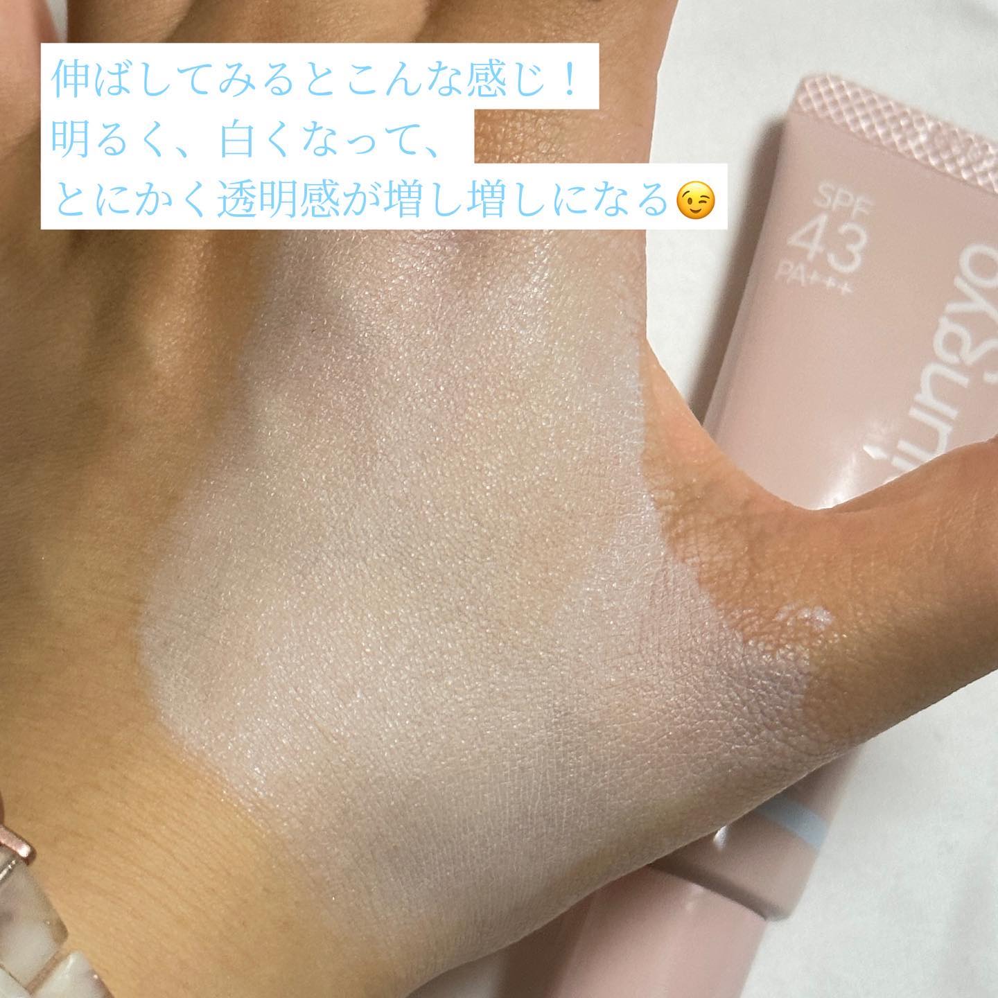 - しっかりカバー&ふんわり白肌メイクが叶うトーンアップベースから、ツヤ感UPの新タイプが登場! ○シルバーパールを加えツヤ肌を演出 ○SPF43 PA+++、紫外線吸収剤不使用 ○4種のボタニカルエキスを配合(すべて保湿成分) セイヨウスギタ葉/茎エキス、クレマティス葉エキス、セイヨウナツユキソウ花エキス、スギナエキス