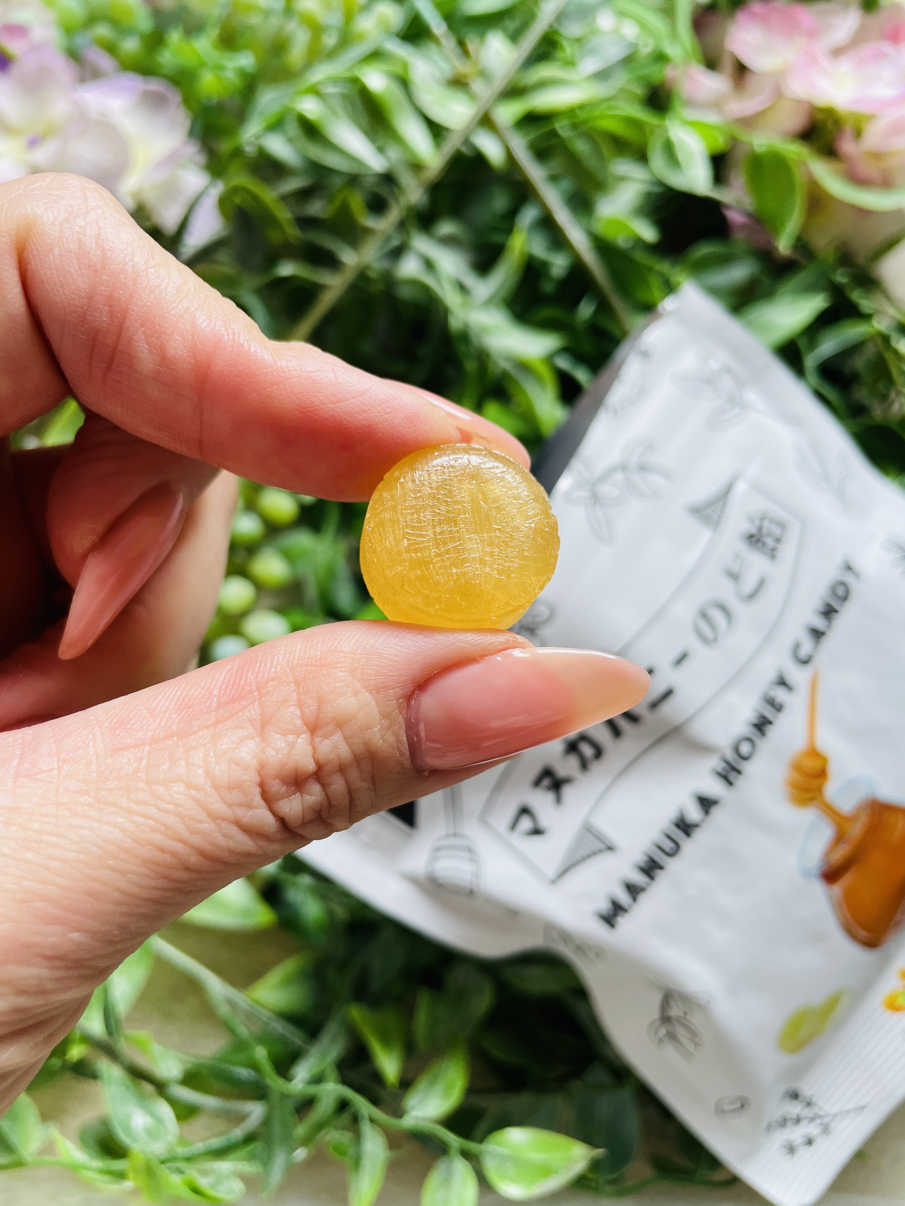 マヌカハニーのど飴 1袋(4g✕10粒) のどの調子や乾燥が気になるときにマヌカハニーがのどを優しく包み込んでくれるよ✨ のどにやさしいグリーンプロポリスとタイム、ローズマリー、セージ、オレガノの4種のハーブを配合! 持ち運びに便利なチャック付きタイプ◎