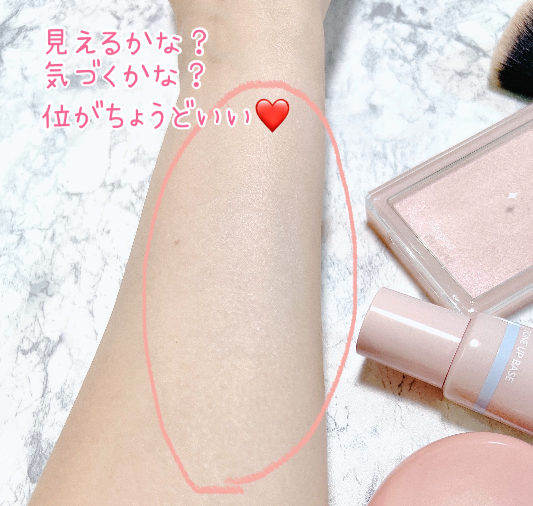 カラー下地をウォンジョンヨ先生のトーンアップベースのスカイブルーを使用してみました。 下地は手に取った時結構なブルーだったので、恐る恐る少量を伸ばして使用したので思った程白くならず、ファンデの色も少し暗めなのでちょうど良い感じ。 それにしてもトーンアップ効果すごい。少量でも黄ぐすみが消える。 透明感も欲しいし、艶も欲しい。なんならカバー力も欲しい。組み合わせで色々変わってきそうで実験するのが楽しい。 夕方になるとマスクをしていたこともあり、薄くなって多少くすんできた気がするけど、一度じゃよく分からないから何度か試してみたい。