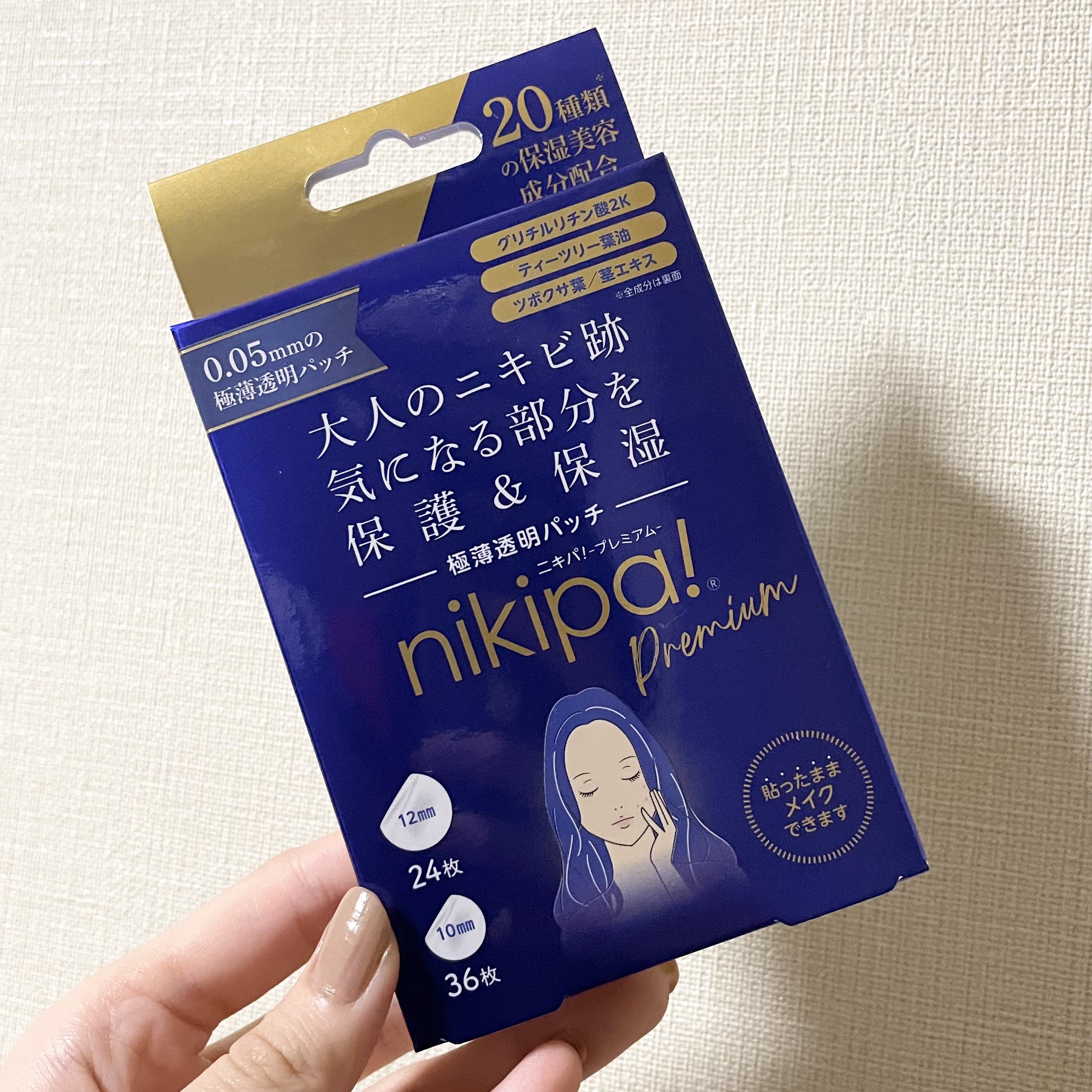 上からメイクできる、薄さ0.05mmの極薄透明パッチ「ニキパ!プレミアム」をご提供いただきました。たくさんの保湿美容成分が入っているので、気になる方は画像の箱裏をご覧ください。使い方は簡単。肌を清潔にした後しっかり水分を拭き取り、気になるとこ...