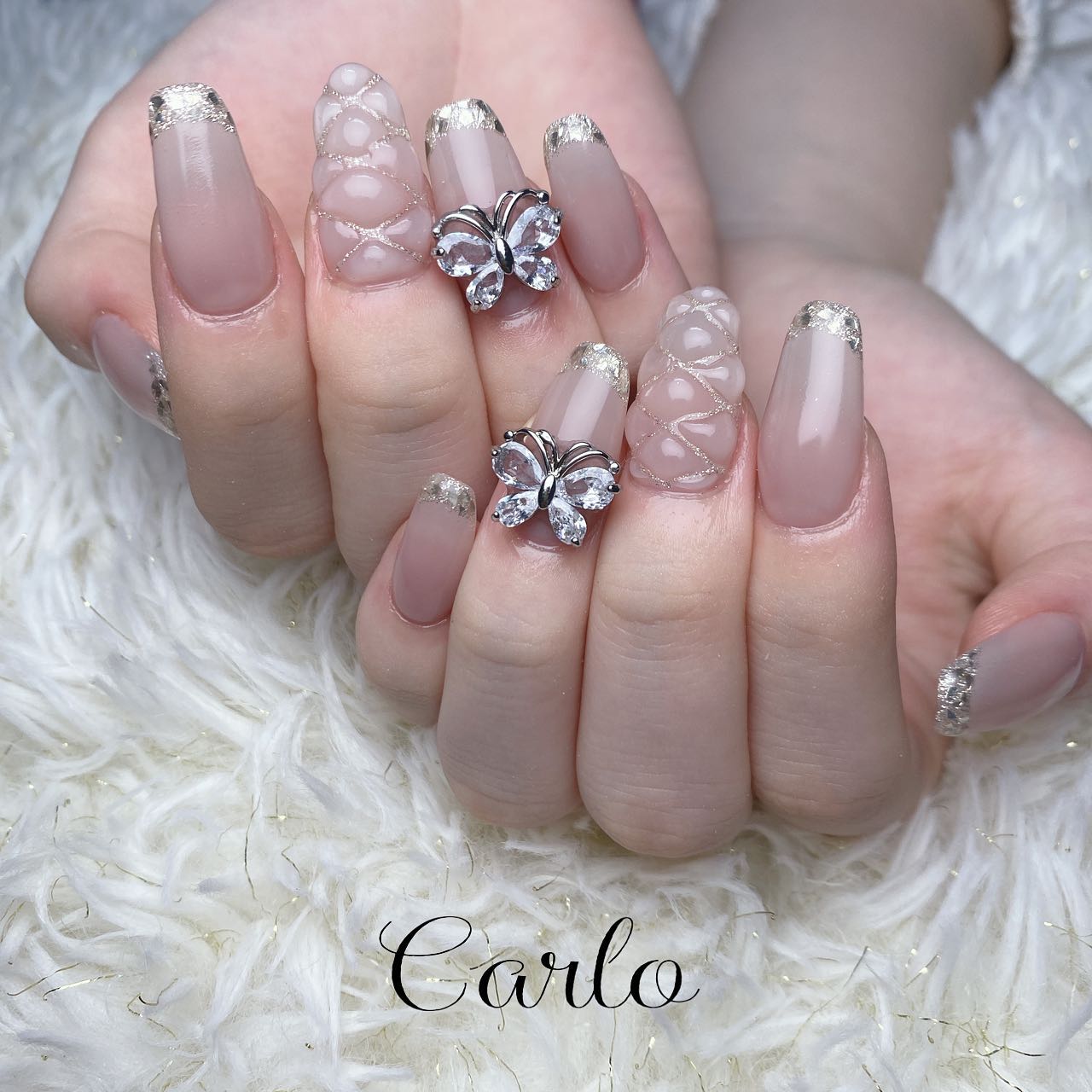 ベースカラー、パーツ追加するだけでシンプルだけどゴージャスな仕上がりに💎 open9:00-close18:00 ご予約・お問合せ LINE ID @797vvdnq 完全個室 駐車場P4