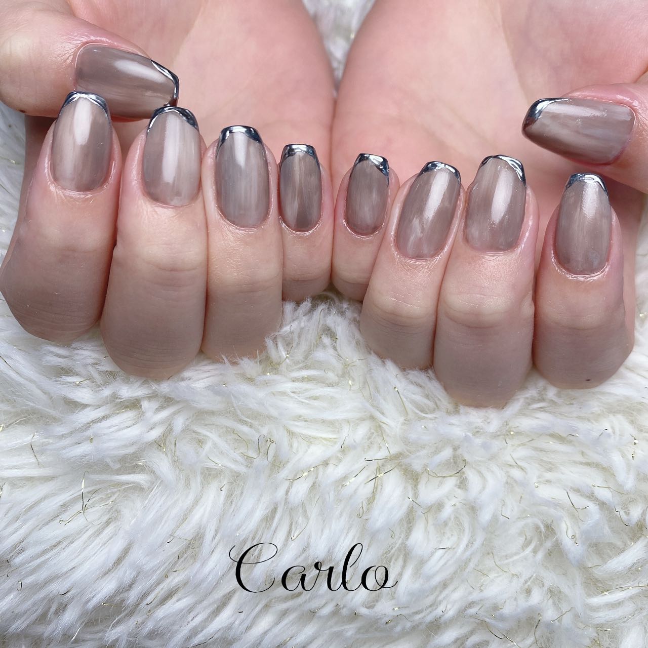 【☾ゴージャスart】所沢市ネイルサロン|Carlo.抜け感のある秋color🍂とmirrorpowderがかわいい🤎🩶.¥8500-.———————————————open9:00-close18:00ご予約・お問合せLINEID@797v...