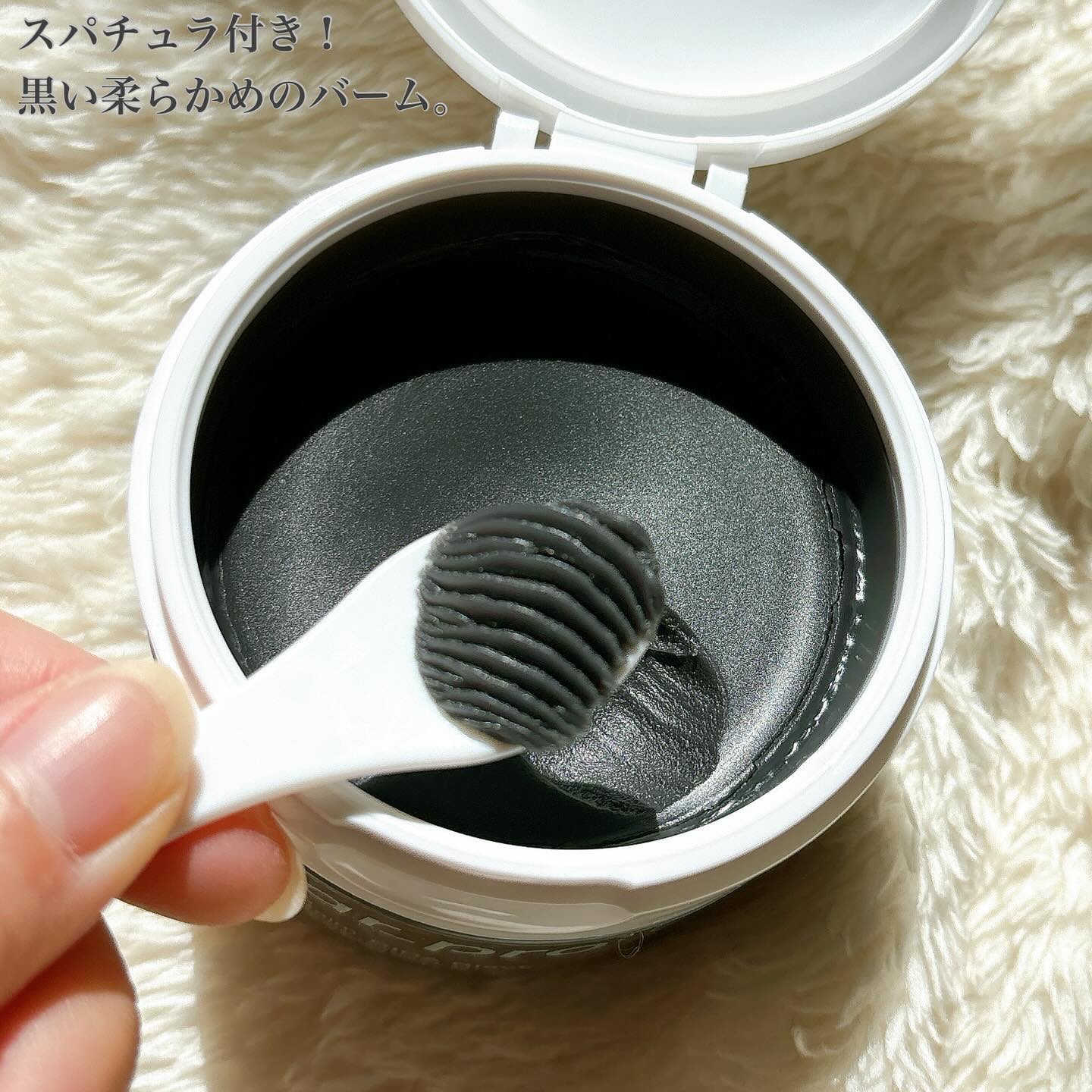 - 毛穴の黒ずみ・皮脂・ベタつきごっそりOFF! "落とすたび 肌うるおう"クレンジングバーム CICA ブラック ♥Piont1:"落とすたび肌うるおう"スキンケアするCICAクレンジングバーム メイクを落とすたび角層水分量アップ! クレンジングしながらうるおいスキンケアできる、新感覚CICAクレンジングバーム。 ♥Piont2:極上のとろけ感で みるみるなじむ 重曹(洗浄成分)※1・炭(皮脂吸着)、ツボクサエキス※2・ドクダミエキス・5種の植物油脂※3(保湿)を配合し、毛穴の黒ずみ・皮脂・ベタつきを吸着除去。落とす前よりうるおったすべすべ肌に。 ♥Piont3:1品7役の多機能オールインワンバーム 1品7役(うるおいケア、クレンジング、洗顔、毛穴ケア、角質クリア、マッサージ効果、トリートメント効果※4)のオールインワンタイプ。 ※1 炭酸水素Na ※2 ツボクサ葉エキス ※3 オリーブ果実油・ゴマ種子油・サフラワー油・シア脂・ホホバ種子油 ※4 メイク汚れなどを除去してキメを整えること