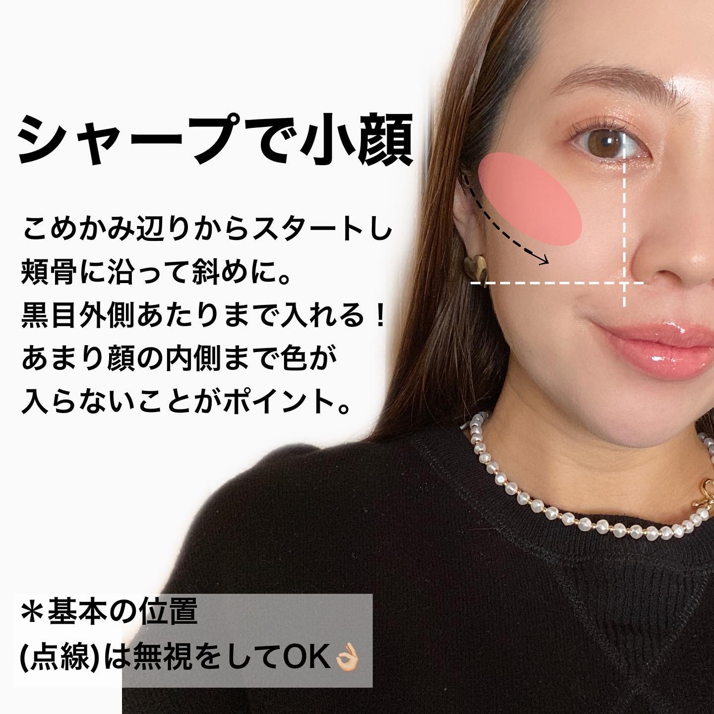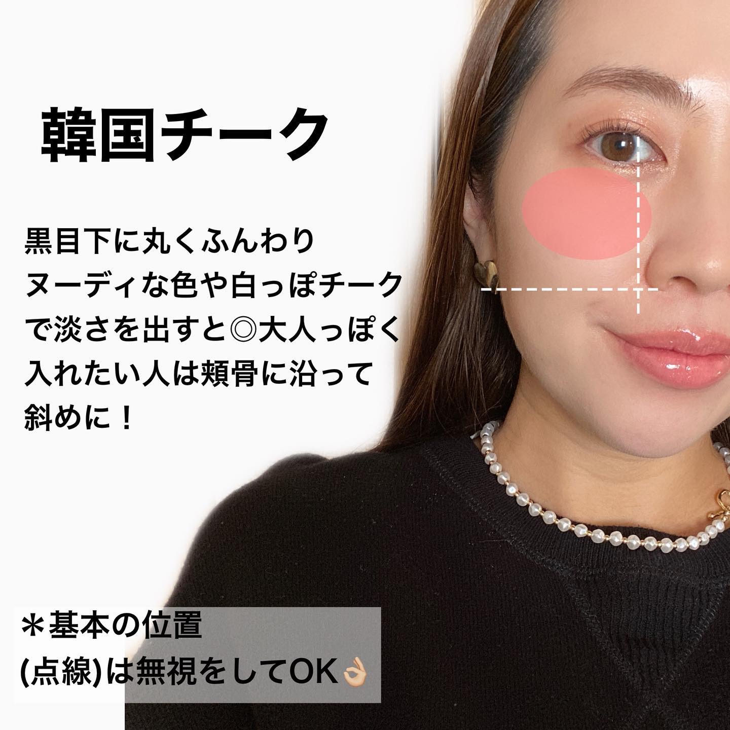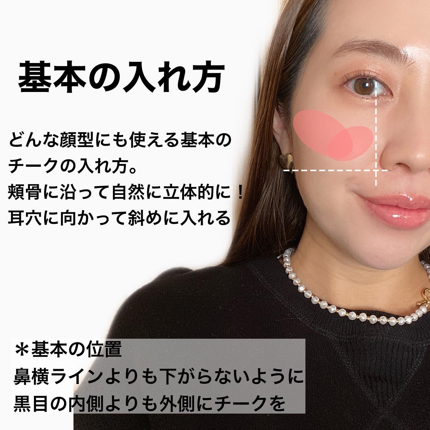 どんなメイクにも馴染む自然な血色感。頬の中央にふんわり丸くのせるだけで、健康的で柔らかい印象に 涙袋に立体感がプラスされ、さらに中顔面短縮効果も◎可愛らしい目元が完成 頬骨のラインに沿って斜めにチークを入れると立体感が際立ち大人っぽい印象に