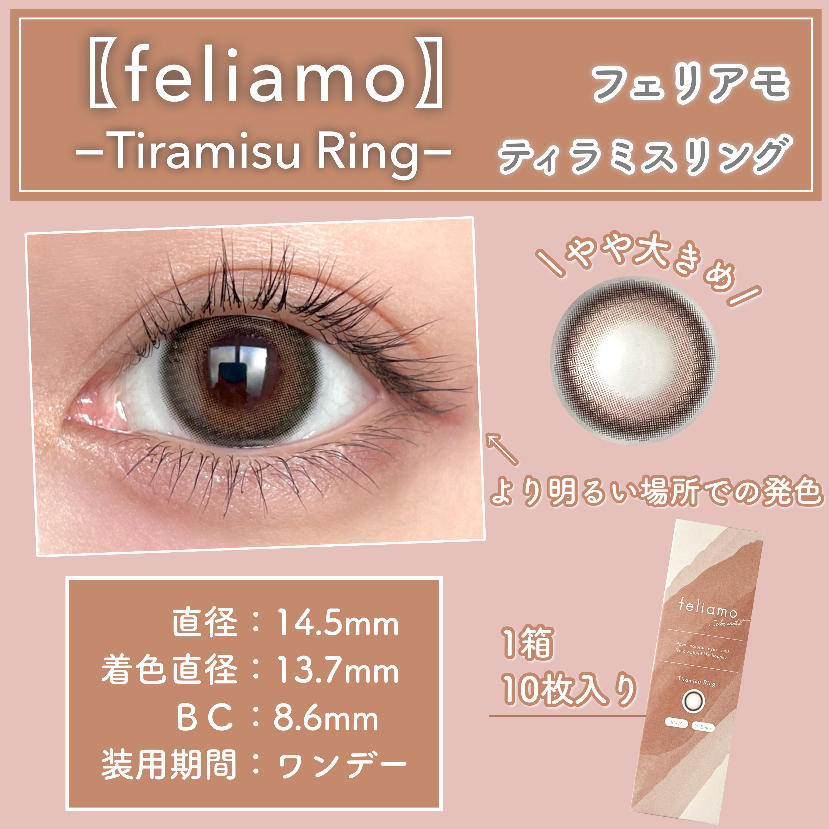 - ※2025年6月以降、商品パッケージ裏面・側面の一部表記を順次変更いたします。尚、これにかかる商品の交換・返品は承っておりません。 どんな瞬間にも溶け込む誰からも愛される瞳へ feliamoの由来は felice amore~幸せな愛~ 瞳から愛されオーラを放つ好印象レンズで女性らしさと品を演出。 オンも、オフも、特別な日も。 どんな場面にも溶け込むレンズラインナップで誰からも愛される瞳に。 UV CUT Feature1 肌や瞳に有害といわれ、白内障などの眼病を引き起こす危険性のある紫外線を99%カットします。(UV-A波75%、UV-B波99%カット) イオン性 Feature1 水分を多く含み酸素を通しやすいため瞳にやさしい使い心地で、快適な装用感です。 高含水 Feature1 水分が多く含むやわらかい素材で、快適なつけ心地です。 レンズ構造 Feature1 まぶた側に着色剤を内包しているため、角膜に色素が触れることがない構造を採用しています。 レンズ形状 Feature1 フチを丸みのある形状にすることで自然な装用感を実現しました。 ※装用感には個人差があります。 カラーコンタクトレンズの不適正使用による眼障害の危険性等などがあります。 ●コンタクトレンズは高度管理医療機器です。不十分な洗浄・消毒など不適切なケアや、長時間・交換期間を超えた装用により、アレルギー性結膜炎、角膜感染症、角膜潰瘍等の重篤な眼障害が発生する危険性があります ●ご使用前に取扱説明書を確認してください 使用上の留意事項 ●眼科医院等を受診してからお求めください ●眼に異常を感じたら直ちにレンズ使用を中止し、お近くの眼科等で診察を受けてください ●医師の指示にしたがってご使用ください ●コンタクトレンズを装用する場合、自覚症状がなくても、眼科医院等での定期検査を受けてください ●レンズに不具合がある場合は使用しないでください