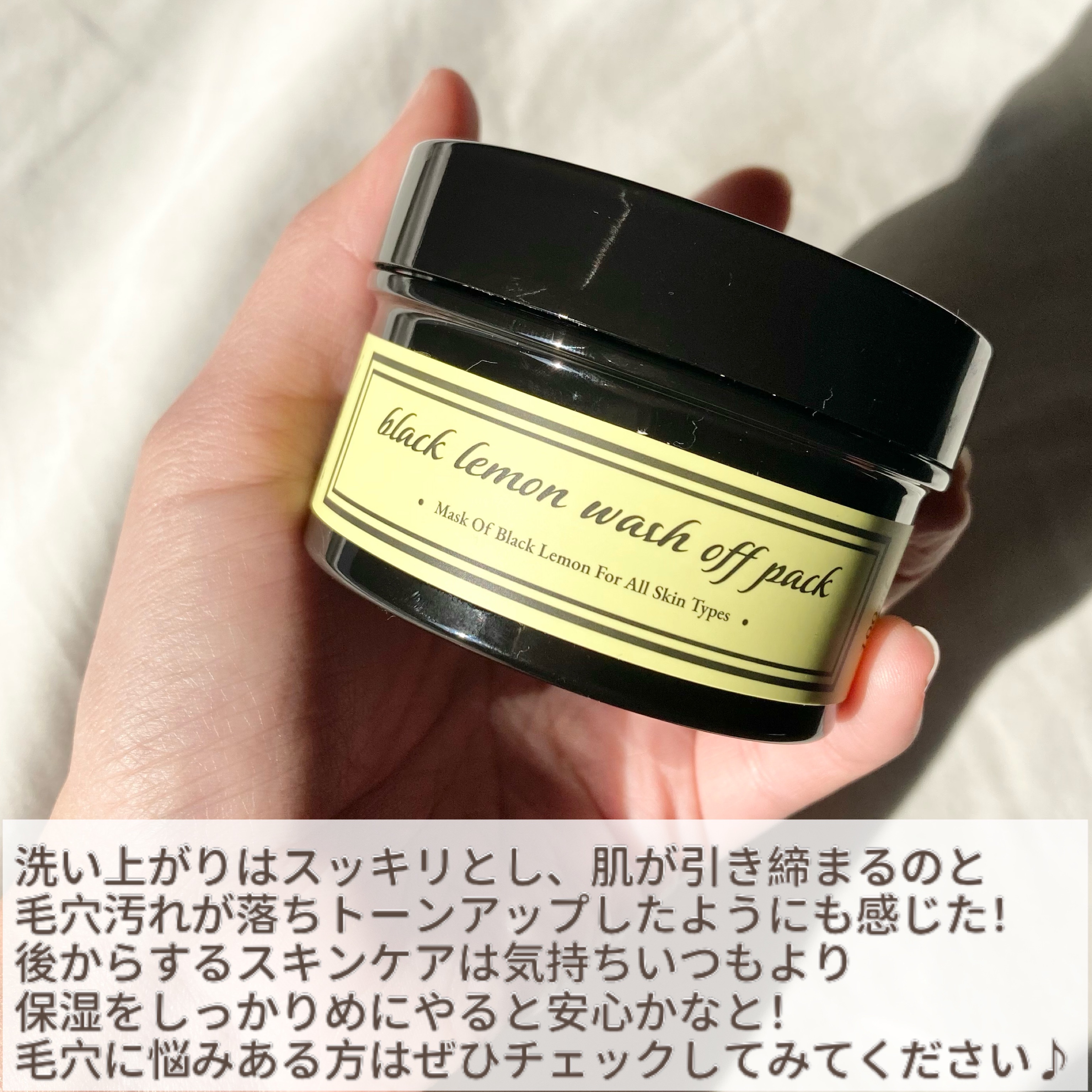 ブラックレモンパックには炭パウダービーンズとレモンバームエキスが配合されており使う時にクーリング感があり塗って少しすると灰色に。 炭パウダービーンズザラザラっと入っているので毛穴の奥にある角質と老廃物もオフ。綺麗にお掃除ができちゃいます。 使用時間は5分で洗い流す。すると毛穴がつるつるで皮脂がベタつかないような肌に。