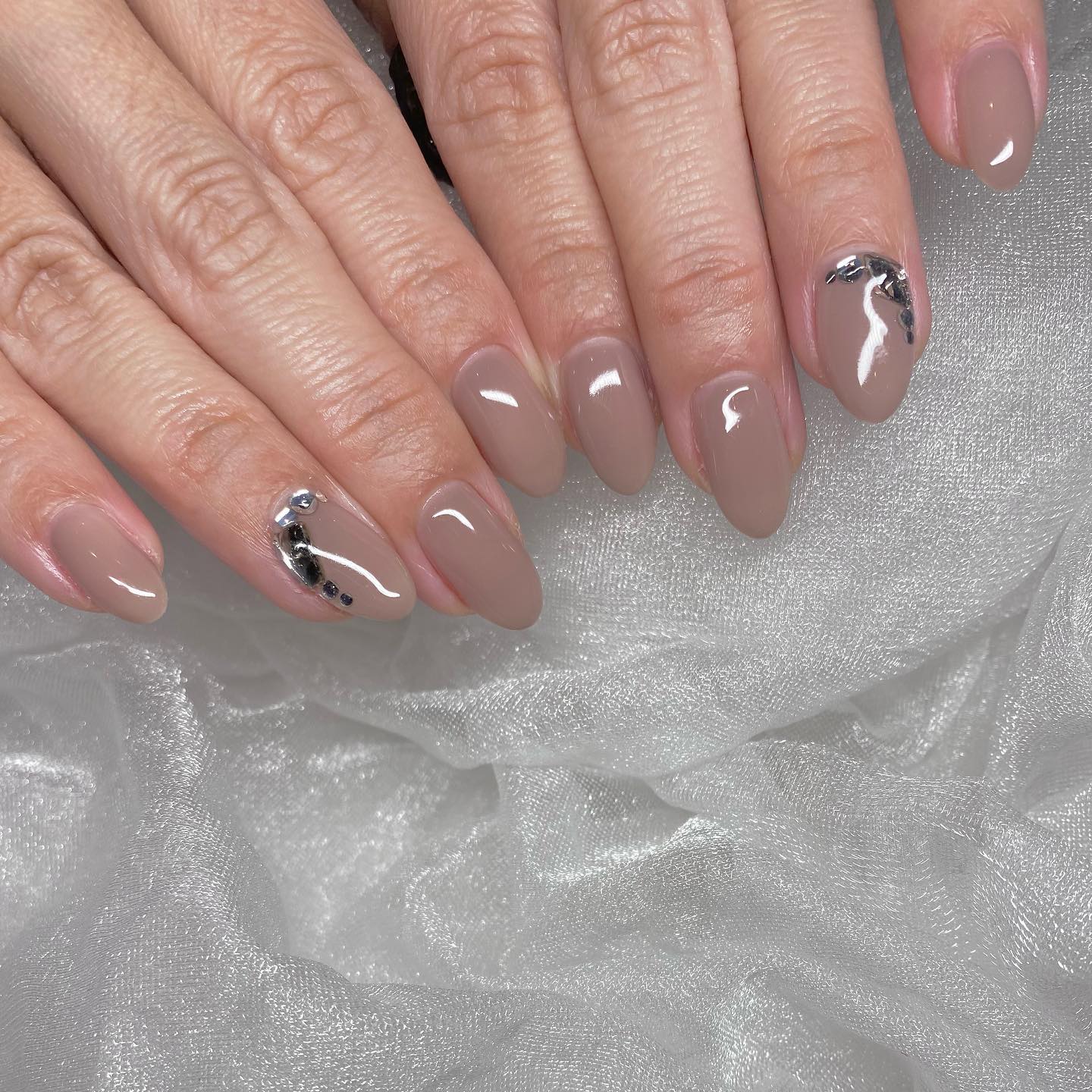 ふんわり優しいシアーなミルクホワイトで おまかせストーンネイル✧·˚⌖. ꙳ 指によって並べ方も色々変えて可愛い……👼🏻💘✨ 冬っぽさも満点ෆ🎧❄ 「ネイルめっちゃかわいいし、 KPOPトークできるネイリストさん 初めて出会いました🥺💝」 って喜んでくださって嬉し(⸝⸝´꒳`⸝⸝)💋
