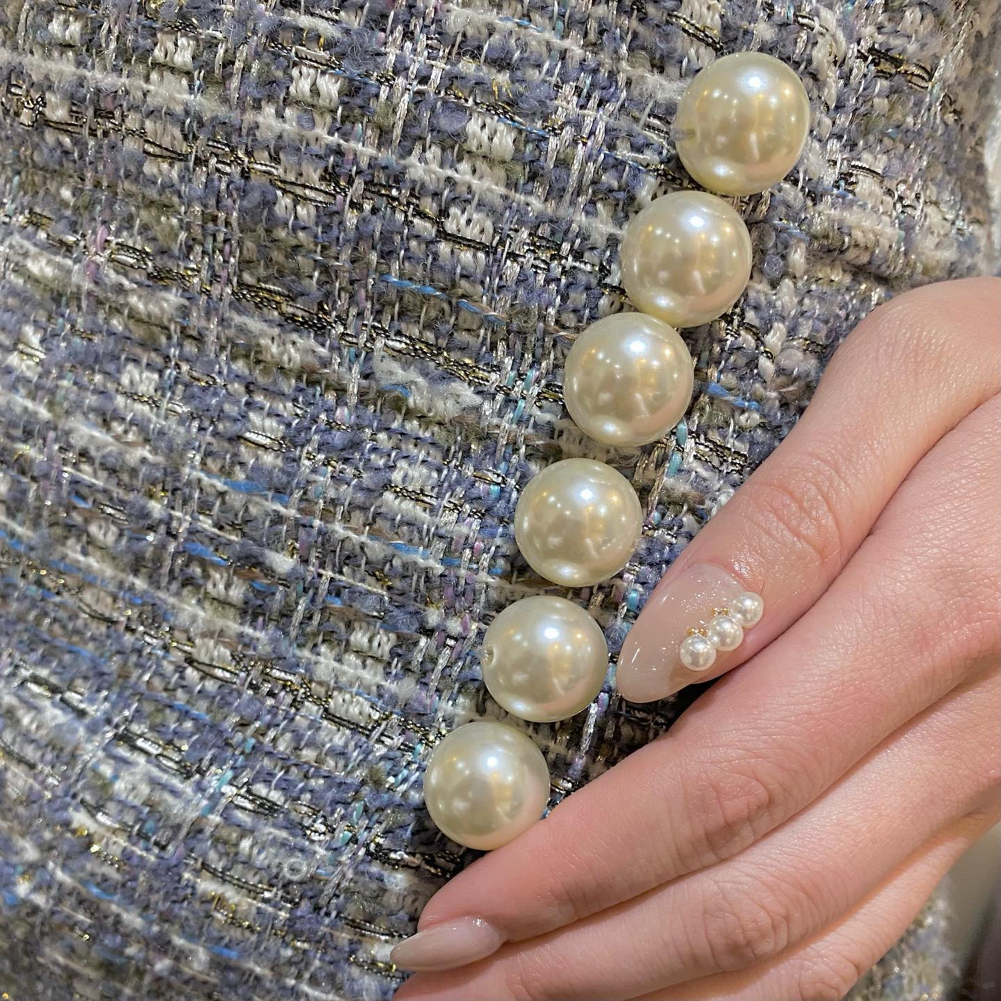 ふんわり優しいシアーなミルクホワイトで おまかせストーンネイル✧·˚⌖. ꙳ 指によって並べ方も色々変えて可愛い……👼🏻💘✨ 冬っぽさも満点ෆ🎧❄ 「ネイルめっちゃかわいいし、 KPOPトークできるネイリストさん 初めて出会いました🥺💝」 って喜んでくださって嬉し(⸝⸝´꒳`⸝⸝)💋