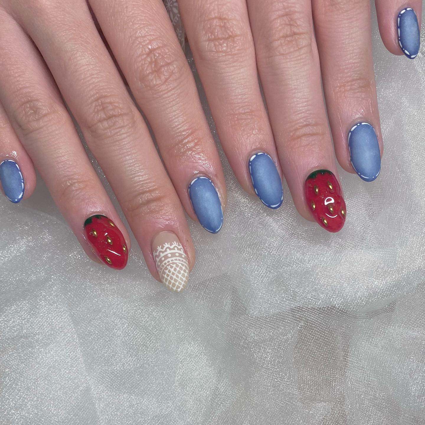 スキニーフレンチ×フラッシュがけグラデ🩵 推しネイルでなくても可愛すぎでは…?!?🥹← 親指にはツアーロゴと推しの水色やじるしを↖🩵 ロゴがカラフルで可愛かった( ◜ω◝)💋 いつも遠くから、ありがとうございます☺️💝
