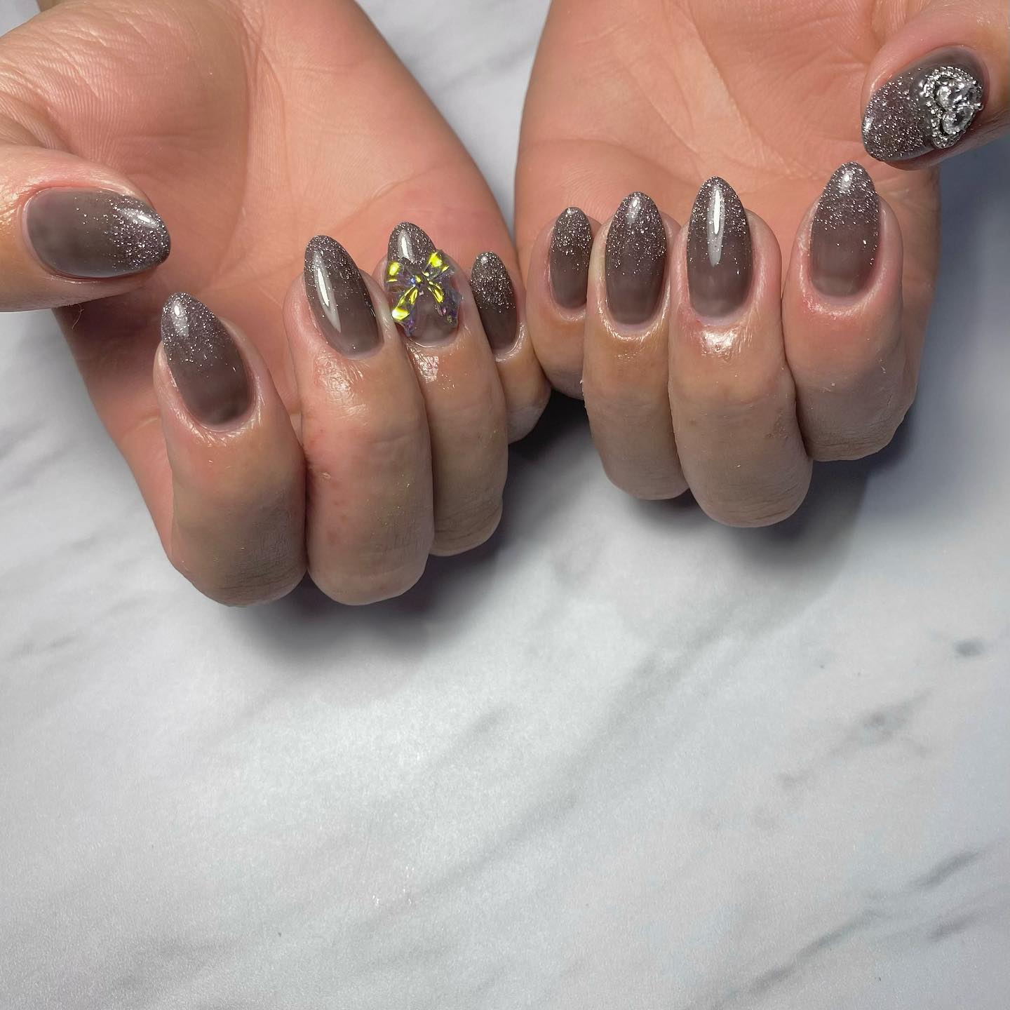 ふんわり優しいシアーなミルクホワイトで おまかせストーンネイル✧·˚⌖. ꙳ 指によって並べ方も色々変えて可愛い……👼🏻💘✨ 冬っぽさも満点ෆ🎧❄ 「ネイルめっちゃかわいいし、 KPOPトークできるネイリストさん 初めて出会いました🥺💝」 って喜んでくださって嬉し(⸝⸝´꒳`⸝⸝)💋