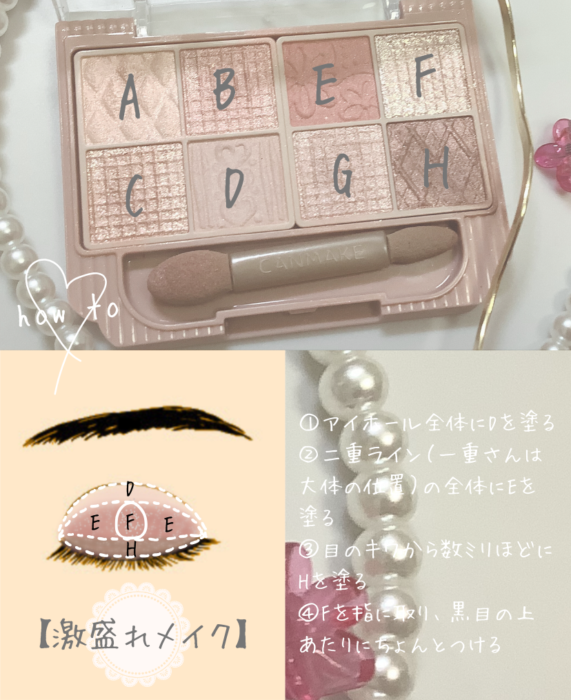 - 持ち歩ける多色パレットがキャンメイクから登場! 捨て色なしの8色入り&チップ付! 「持ち歩けること」や「外出先でもメイク直しができること」を重視した多色パレット。 持ち運びやすいサイズ感なのに、贅沢に8色入りです。 さらに便利なダブルエンドチップまで! マット×パール×ラメなど、組み合わせ方はあなたの自由! 自分好みのアイメイクを楽しめます。