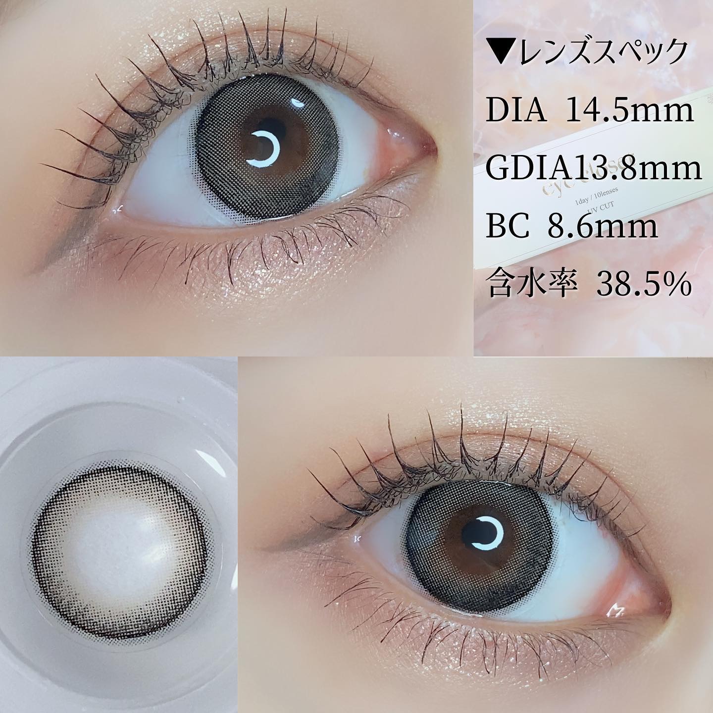 アイクローゼットジャンボは国内最大DIA15.0mmの大きめカラコン♡ でかこっぺぱんとセサミは着色直径14.4mmなのでつけるとくりっとしたデカ目に🥺 ベージュとブラウンのグラデでツヤっと綺麗な茶目に🧸 こっそり盛れる細フチでちゅるんとした瞳に♡ 可愛く盛れるグレーカラコンを探している方に◎