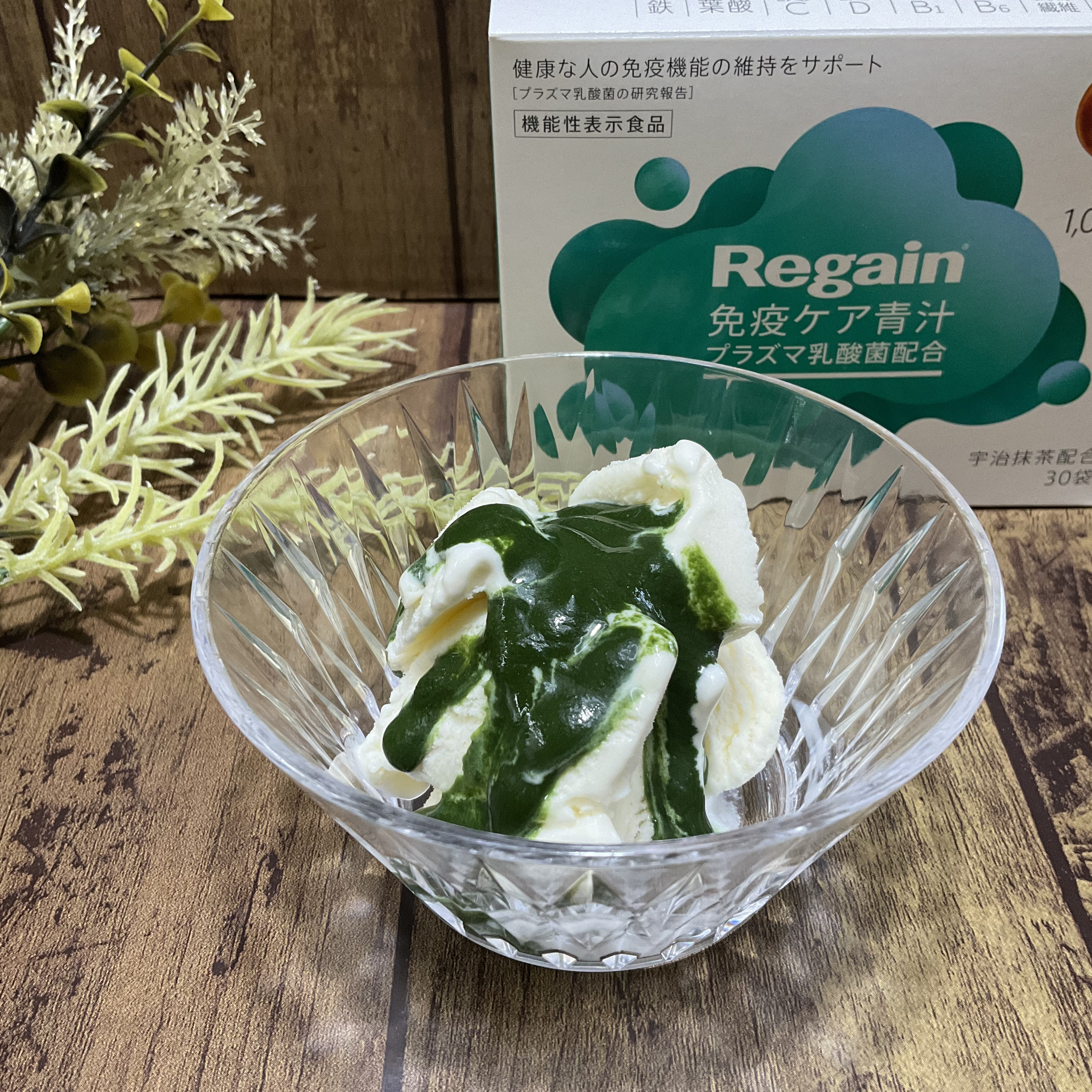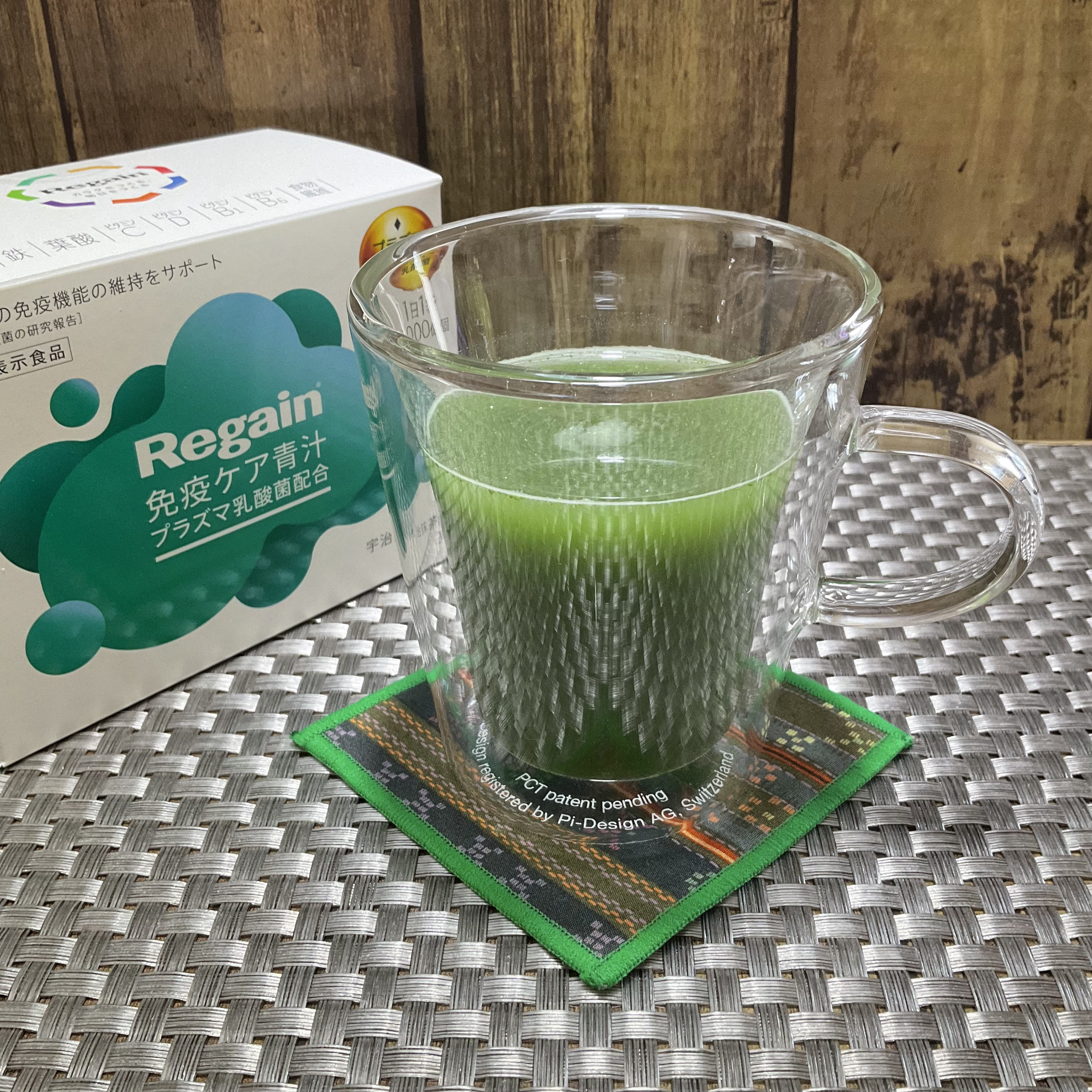 【 Regain免疫ケア青汁 】は健康な人の免疫機能の維持をサポートしてくれるとのこと。 免疫の司令塔、pDC ※1に働きかける「プラズマ乳酸菌」と7つの栄養素(ビタミンC・ビタミンB・ビタミンB1・ビタミンB2・葉酸・鉄・食物繊維)を配合。 さっと解けやすいので使いやすく、青汁特有のえぐみや苦みも少なく美味しく飲めます。 宇治抹茶入りで抹茶感が強いので青汁を飲んでいると言うよりは、緑茶を飲んでいるよう。 牛乳に溶かして、抹茶ラテ風にしても美味♪ 青汁が苦手な方にも違和感なく飲めると思います。 【 Regain免疫ケア青汁 】で食生活で不足しがちな栄養素を補いながら、免疫機能の維持をサポートしていこうと思います!