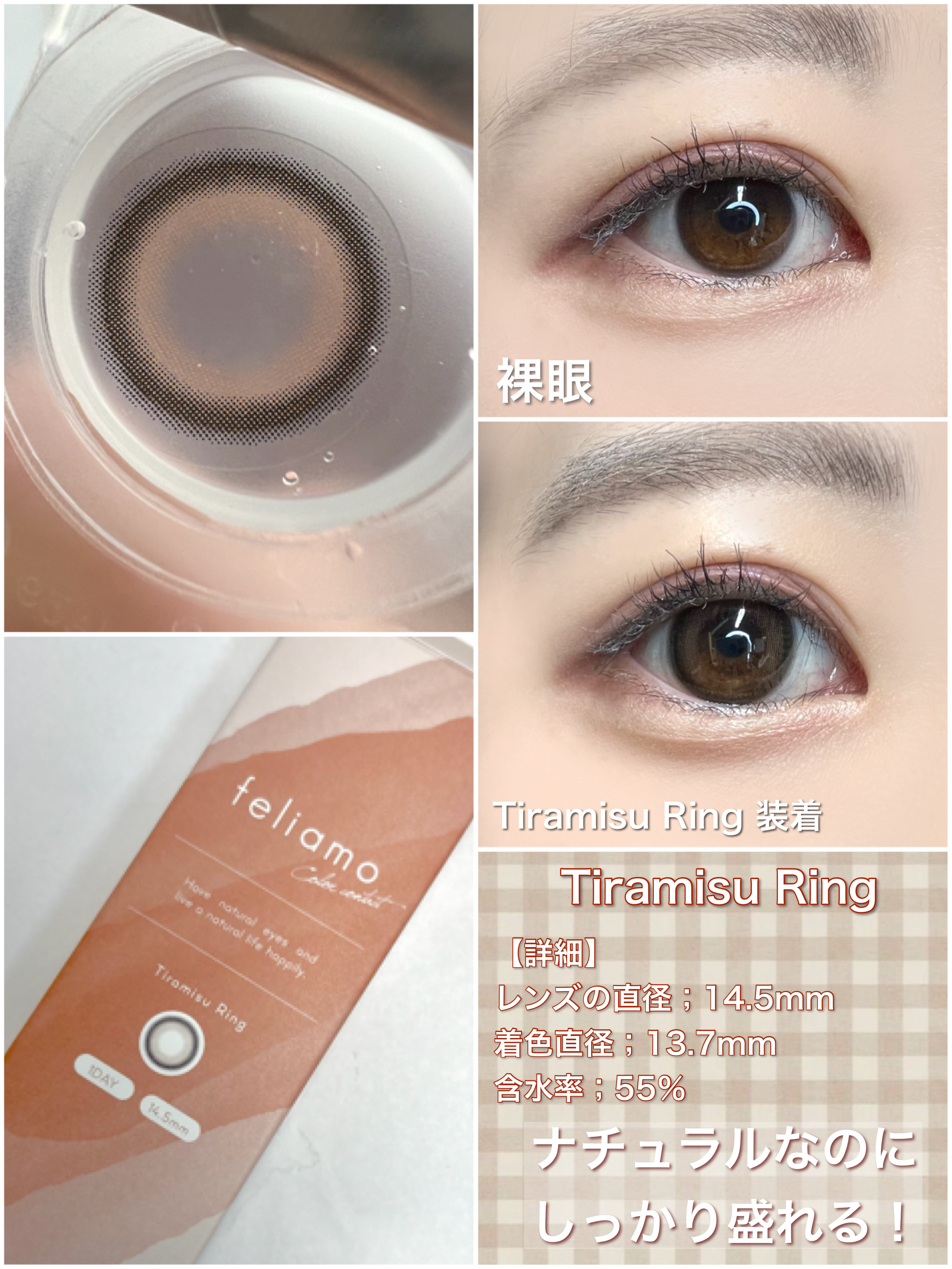 \じゅんわりフチで甘い瞳に🤎✨/◼︎feliamofeliamo1dayティラミスリング¥1,760DIA:14.5mmBC:8.6mm着色直径:13.7mm着色直径が13.7mmと大きめな盛れるレンズ🤎太フチ×ナチュラルブラウンでくりっとか...