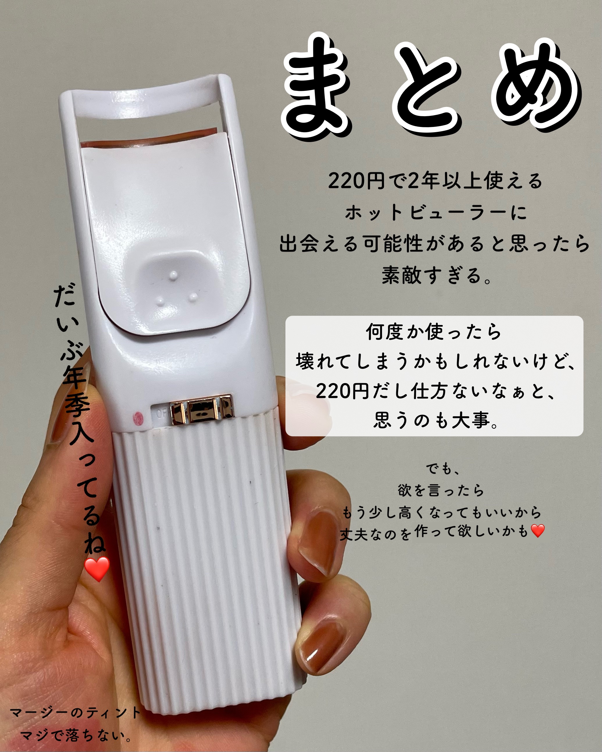 220円で買えちゃうホットビューラー💐 DAISO 電動ホットビューラー 200円 200円で買えるホットビューラー 使用には単4形2本が必要になります ビューラーの様な仕様で初めての方でも簡単に睫毛を上げることができます🌱