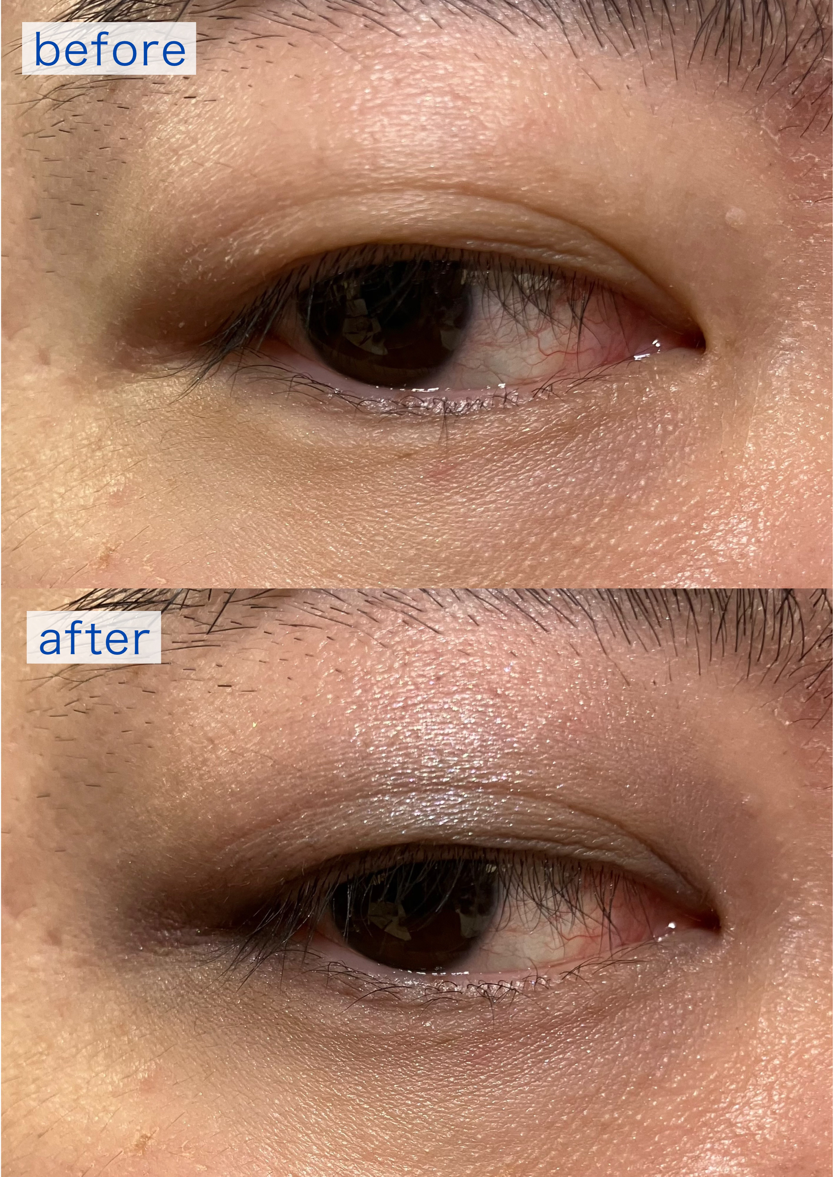 ラメ ピンク、白、ベージュなどの色が混ざっているように思います。 セミマット 青みも黄みもない淡いベージュです。わずかにパール感があります。 Cを上瞼の目尻のみにライン状に塗布します。