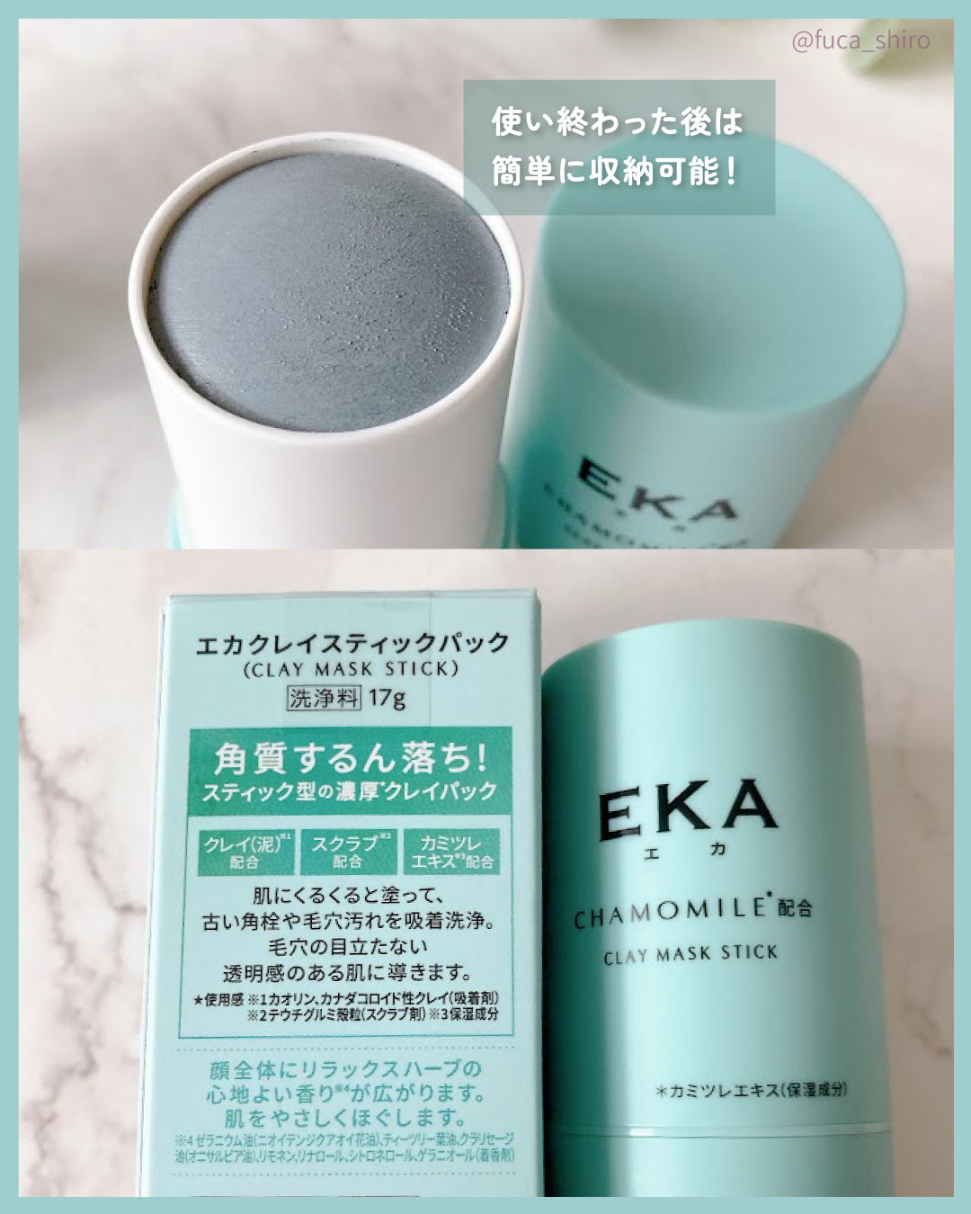 「スティック型」の泥マスク もう聞いた段階でめちゃくちゃ楽そう〜!と思って とっても期待していたんだけど 正直期待以上だった!!! 楽そうと思っていた反面スティックって聞くと なんか硬そうだな?みたいなイメージもあったんだけど これが意外と程よくて簡単に塗れる👏🏻 クレイパックするときは服につかないようにだとか そもそも時間があるときに みたいなイメージだったけどそれが覆されたアイテム🌟 とにかく簡単!短時間でOK!だから 朝メイク前にパパっとしちゃおうって気にもなるし これは是非おすすめしたい!!! 使用感としてはかなりスッキリ! 使用後は早くスキンケアしよ と思うような感じになるから好みが分かれるとしたら そこかなと個人的に思ってる💭 でもこれメイク前に使うと肌がとても良い感じで 本当に愛用してる🙏🏻