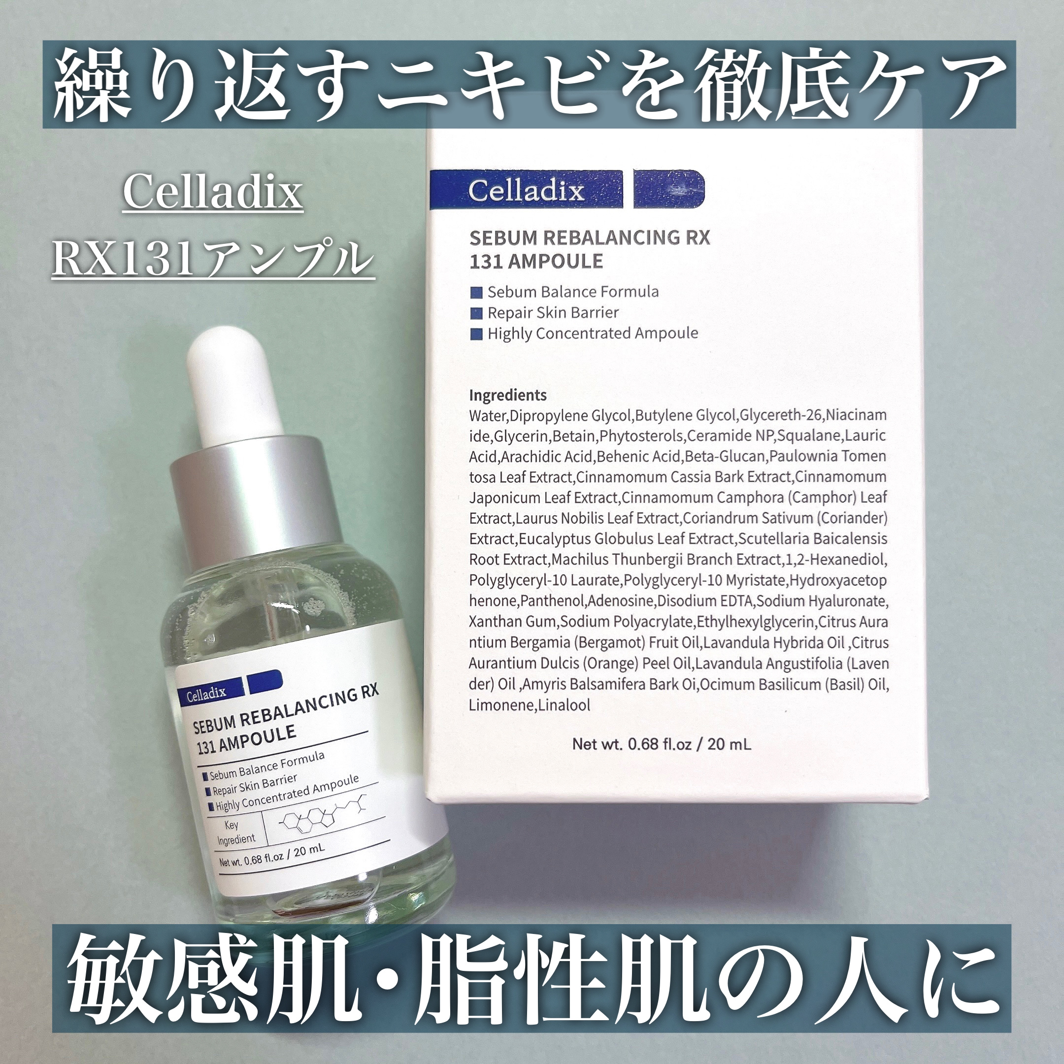 - 韓国独自保湿成分セラミド配合の導入美容液。 ※パッケージリニューアル 「セボムリバランシングRX131アンプル」は「131 ポア クリアリング セラム」に名称が変更になりました。(成分内容変更なし)