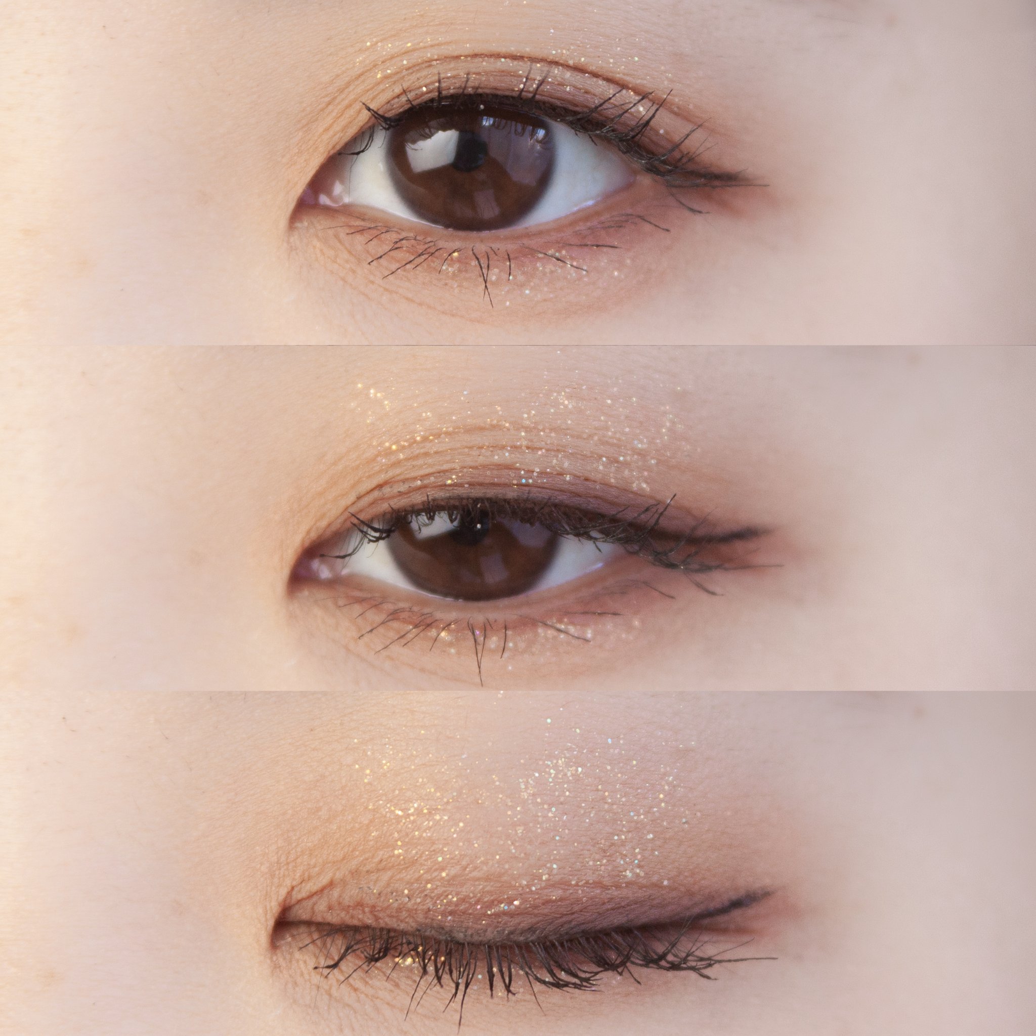 - ラメの大きさ、形、テクスチャー、チップの形、細部にまでこだわってつくられたアイグリッター。しっとりとした水分ジェルベースと多彩なラメが、華やかで輝く目元を演出します。六角形型のラメが、肌に触れる光の反射率を上げることで、輝きを増幅させる効果が期待できます。皮膚の薄い目元にも考慮し、シカ成分(ツボクサエキス:整肌成分)を配合。