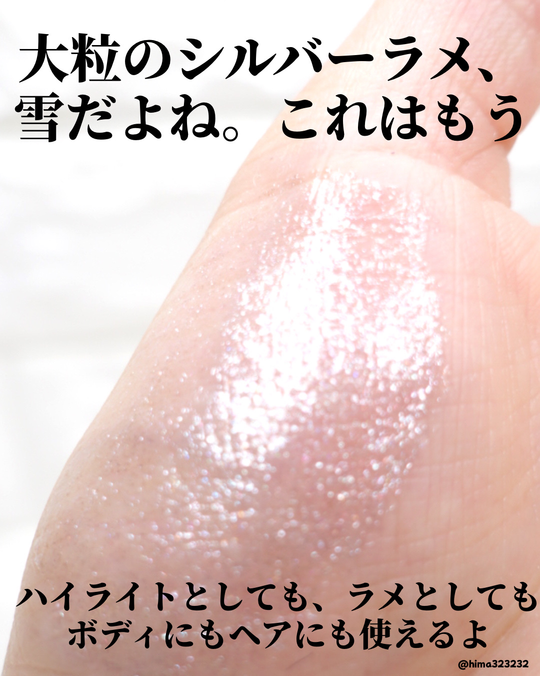 - <2 ピンクシェル(Pink Shell)> 水添ポリ(C6-14オレフィン)、トリイソステアリン酸ポリグリセリル-2、水添(スチレン/イソプレン)コポリマー、炭酸ジカプリリル、マイカ、酸化チタン、合成フルオロフロゴパイト、1,2-ヘキサンジオール、酸化鉄、安息香酸ベンジル、酸化スズ、水、シリカ、アルガニアスピノサ核油、BG、トコフェロール、リナロール、リモネン、モモ果実エキス、ヒアルロン酸Na、加水分解コラーゲン、ヒアルロン酸ヒドロキシプロピルトリモニウム、エチルヘキシルグリセリン、加水分解ヒアルロン酸、アセチルヒアルロン酸Na、ヒアルロン酸、加水分解ヒアルロン酸Na、ヒアルロン酸クロスポリマーNa、ヒアルロン酸K、フェノキシエタノール、香料 <4 ムーンライト(Moonlight)> 水添ポリ(C6-14オレフィン)、トリイソステアリン酸ポリグリセリル-2、水添(スチレン/イソプレン)コポリマー、炭酸ジカプリリル、マイカ、酸化チタン、1,2-ヘキサンジオール、水、酸化鉄、酸化スズ、テトラ(ジ-t-ブチルヒドロキシヒドロケイヒ酸)ペンタエリスリチル、アルガニアスピノサ核油、トコフェロール、BG、モモ果実エキス、ヒアルロン酸Na、加水分解コラーゲン、ヒアルロン酸ヒドロキシプロピルトリモニウム、エチルヘキシルグリセリン、アセチルヒアルロン酸Na、加水分解ヒアルロン酸、ヒアルロン酸、ヒアルロン酸クロスポリマーNa、加水分解ヒアルロン酸Na、ヒアルロン酸K、フェノキシエタノール、香料 <5 マーメイド(Mermaid)> 水添ポリ(C6-14オレフィン)、トリイソステアリン酸ポリグリセリル-2、水添(スチレン/イソプレン)コポリマー、炭酸ジカプリリル、マイカ、酸化チタン、合成フルオロフロゴパイト、1,2-ヘキサンジオール、酸化スズ、水、コンジョウ、テトラ(ジ-t-ブチルヒドロキシヒドロケイヒ酸)ペンタエリスリチル、アルガニアスピノサ核油、トコフェロール、BG、モモ果実エキス、ヒアルロン酸Na、加水分解コラーゲン、ヒアルロン酸ヒドロキシプロピルトリモニウム、エチルヘキシルグリセリン、アセチルヒアルロン酸Na、加水分解ヒアルロン酸、ヒアルロン酸、ヒアルロン酸クロスポリマーNa、加水分解ヒアルロン酸Na、ヒアルロン酸K、フェノキシエタノール、香料 <6 シークレットジェム(Secret Gem)> 水添ポリ(C6-14オレフィン)、トリイソステアリン酸ポリグリセリル-2、水添(スチレン/イソプレン)コポリマー、炭酸ジカプリリル、酸化チタン、マイカ、合成フルオロフロゴパイト、1,2-ヘキサンジオール、水、酸化スズ、テトラ(ジ-t-ブチルヒドロキシヒドロケイヒ酸)ペンタエリスリチル、アルガニアスピノサ核油、トコフェロール、カルミン、コンジョウ、BG、モモ果実エキス、ヒアルロン酸Na、加水分解コラーゲン、ヒアルロン酸ヒドロキシプロピルトリモニウム、エチルヘキシルグリセリン、アセチルヒアルロン酸Na、加水分解ヒアルロン酸、ヒアルロン酸、ヒアルロン酸クロスポリマーNa、加水分解ヒアルロン酸Na、ヒアルロン酸K、フェノキシエタノール、香料